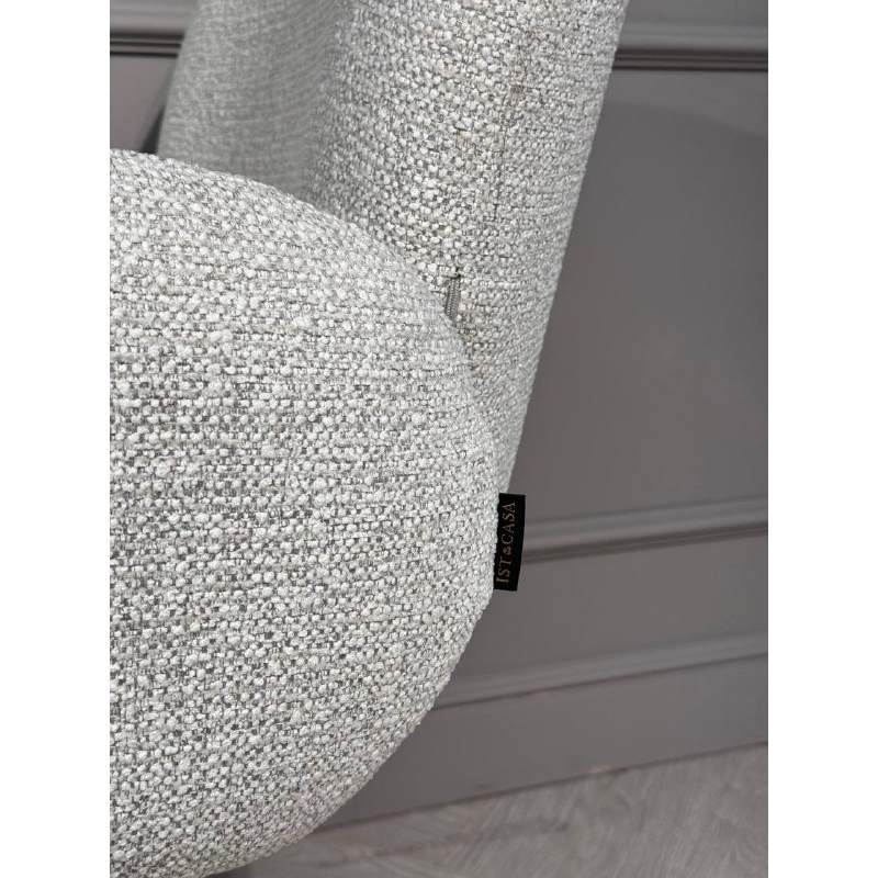 Обивка изготовлена из прочной и приятной на ощупь рогожки цвета белый крем с выразительным плетением, которая легко вписывается в светлые интерьеры и создает ощущение уюта и свежести пространства. Материал устойчив к истиранию и прост в уходе, что делает его отличным выбором для ежедневного использования.