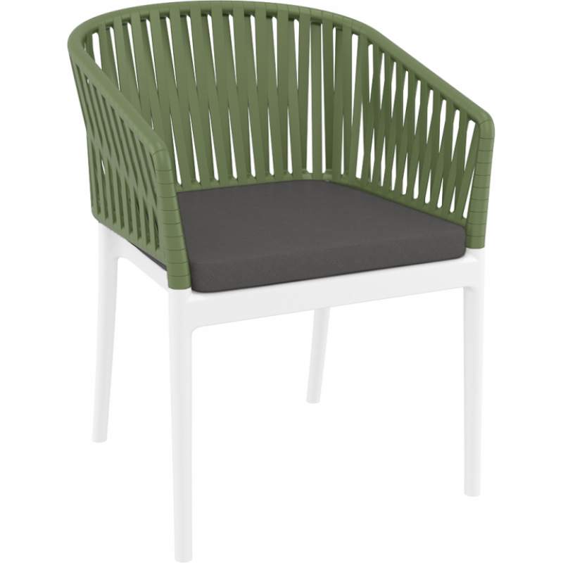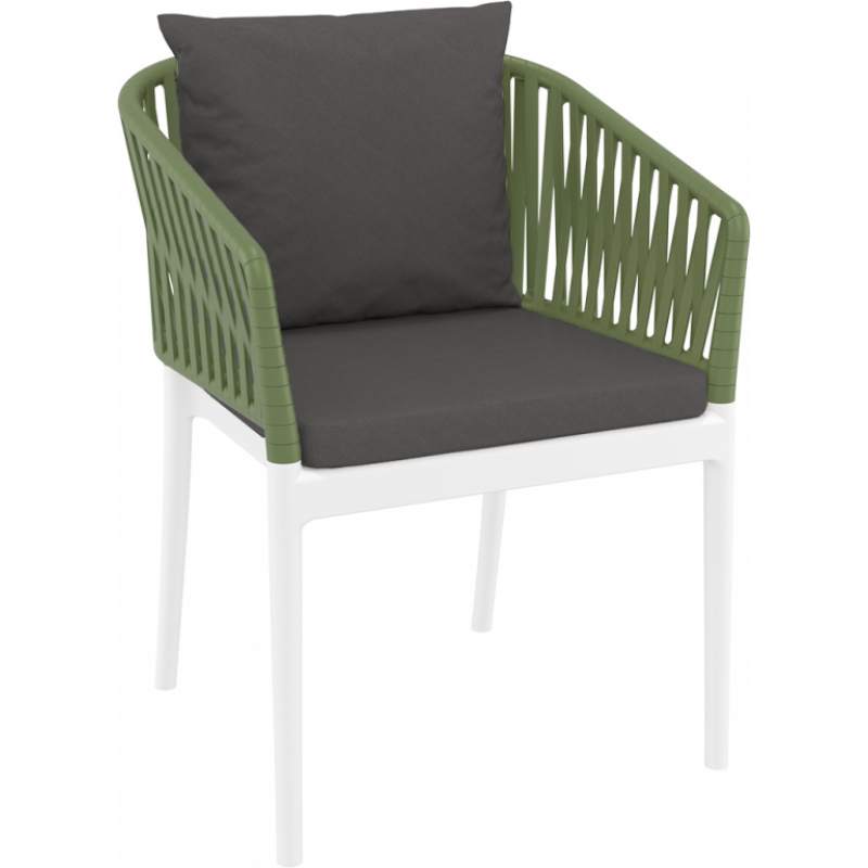 Кресло пластиковое с подушками Portofino Siesta Contract белый, оливковый, темно-серый