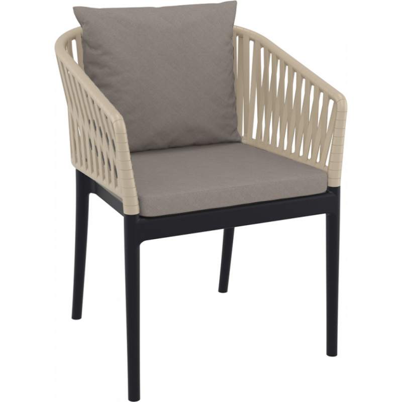 Кресло пластиковое с подушками Portofino Siesta Contract черный, бежевый, светло-коричневый