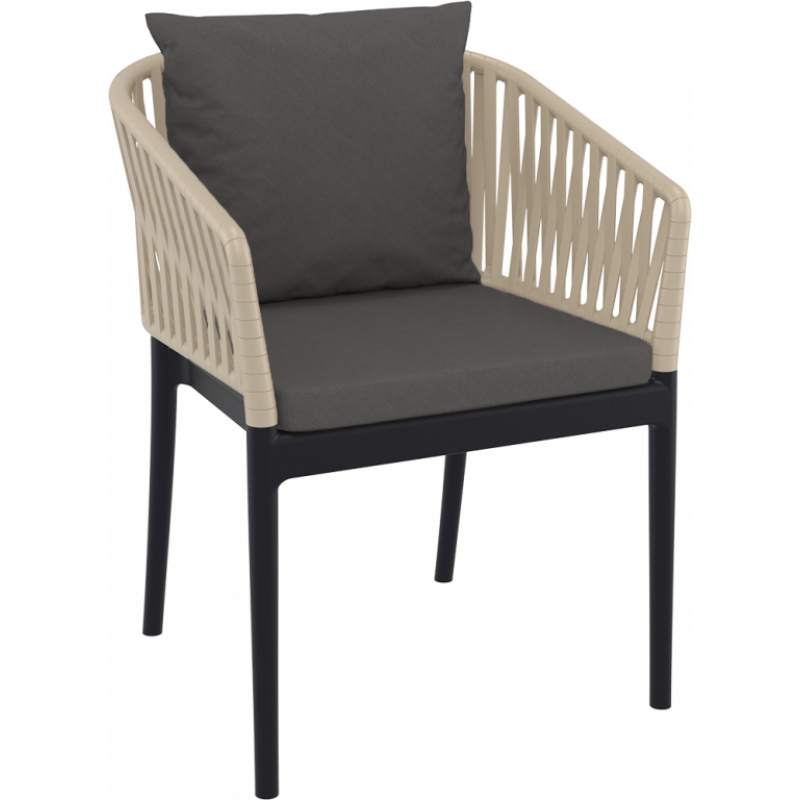 Кресло пластиковое с подушками Portofino Siesta Contract черный, бежевый, темно-серый
