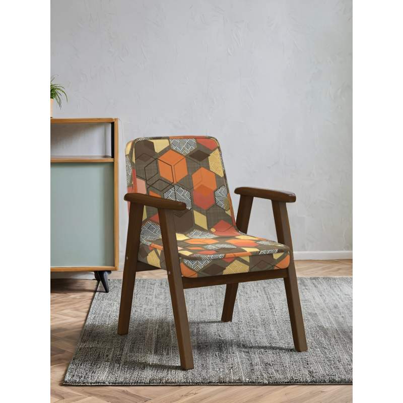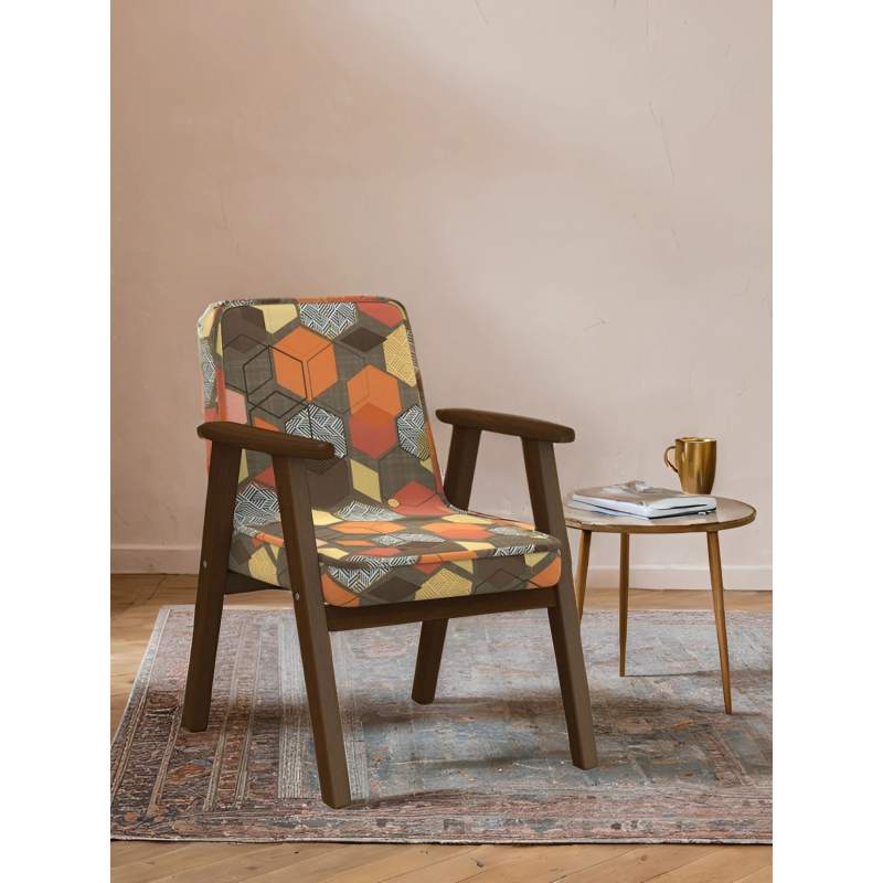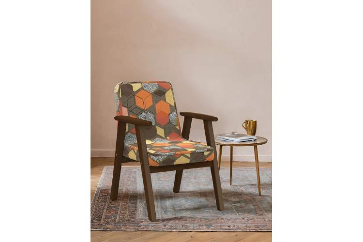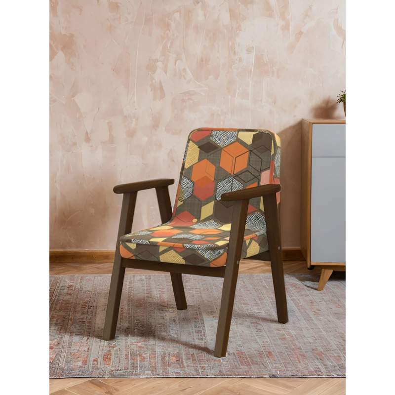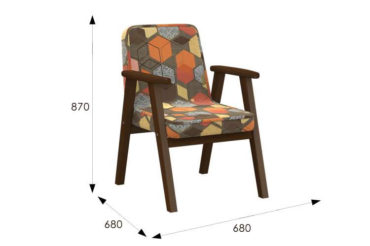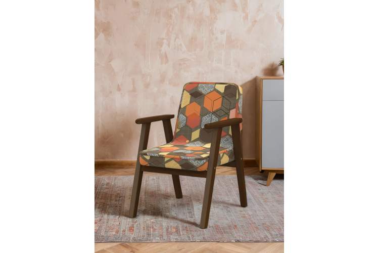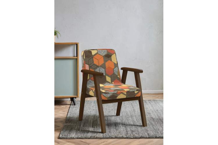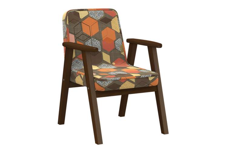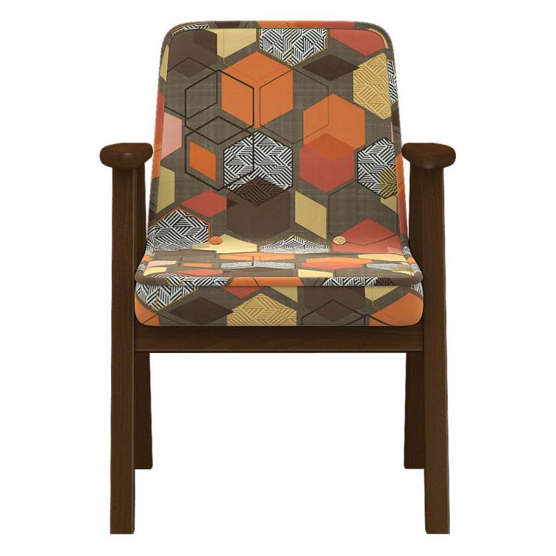 Кресло Ретро ткань геометрия коричневый, каркас орех