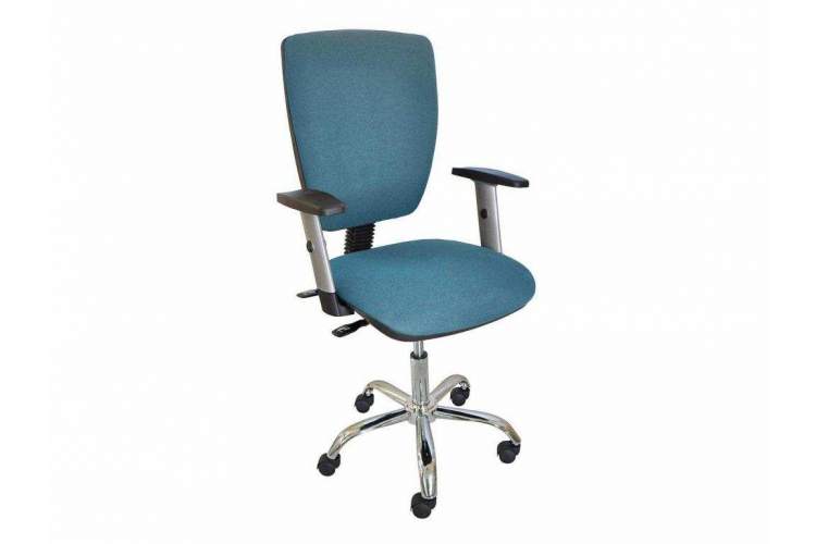 Обивка акриловая ткань Механизм синхро 2002/11 с регулировкой наклона спинки Крестовина хром Хромированные подлокотники Т-образные с мягкой накладкой, регулировкой по высоте в нескольких положениях и поворотным механизмом Газ-патрон:пп-259-140 хром,2 кл Ролики материал - нейлон