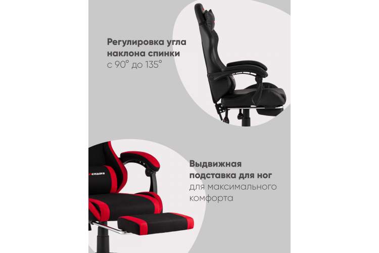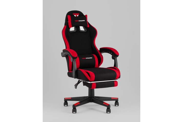 Кресло спортивное TopChairs Prophet с оттоманкой ткань черно-красный