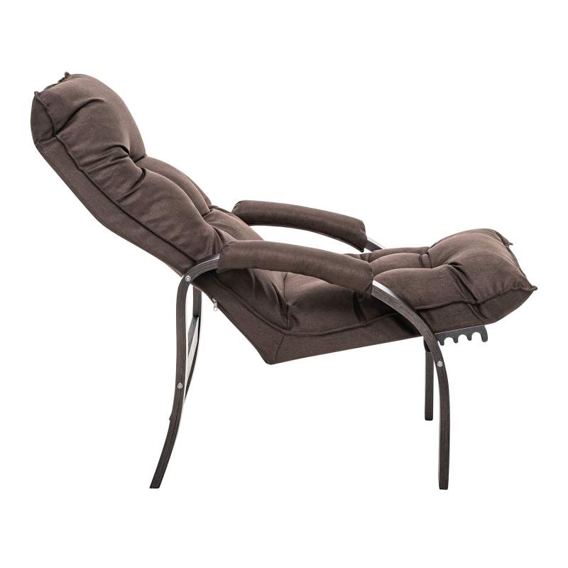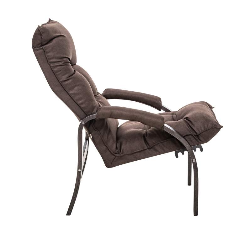 Мягкое кресло для отдыха дома и на даче Левада сделает комфортным интерьер комнаты модерн или хай-тек. Стильные кресла трансформеры из гнутоклееной коллекции мягкой мебели Leset имеют характерный силуэт, функциональны и компактны, поэтому популярны. Кресло-стул с подлокотниками и уютным сиденьем уместно в спальне, гостиной, прихожей, на балконе, в закрытой дачной беседке. У основания кресло раскладное оснащено механизмом гребенка, за счет чего одним движением спинка переключается в 4 положения. Этим модель напоминает шезлонг, но Левада Leset -полноценное интерьерное кресло для отдыха: современный дизайн, изящный деревянный каркас под итальянским лаком, велюровый чехол, наполнитель из эластичного пенополиуретана. Накладки на подлокотниках снимаются для чистки, приспинная подушка декорирована пуговицами. Эргономичное каркасное кресло раскладушка выдержит до 120 кг. Регулируемое кресло позволит расслабиться как на диване, это чудесный подарок в новую квартиру друзьям.