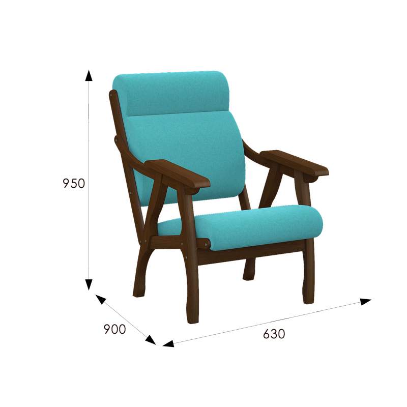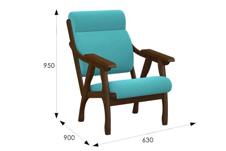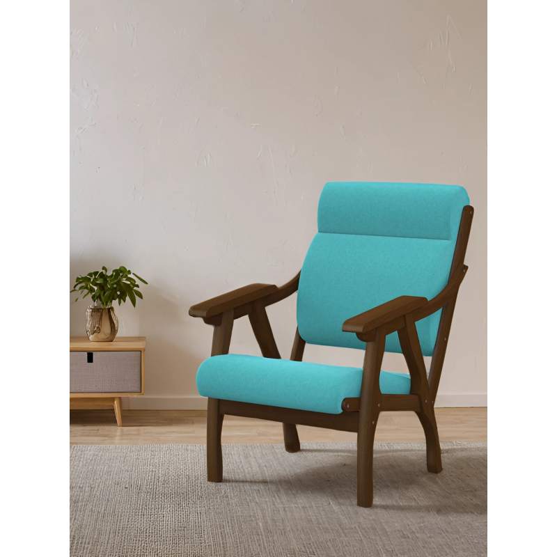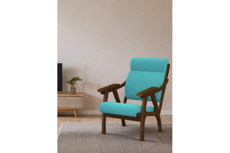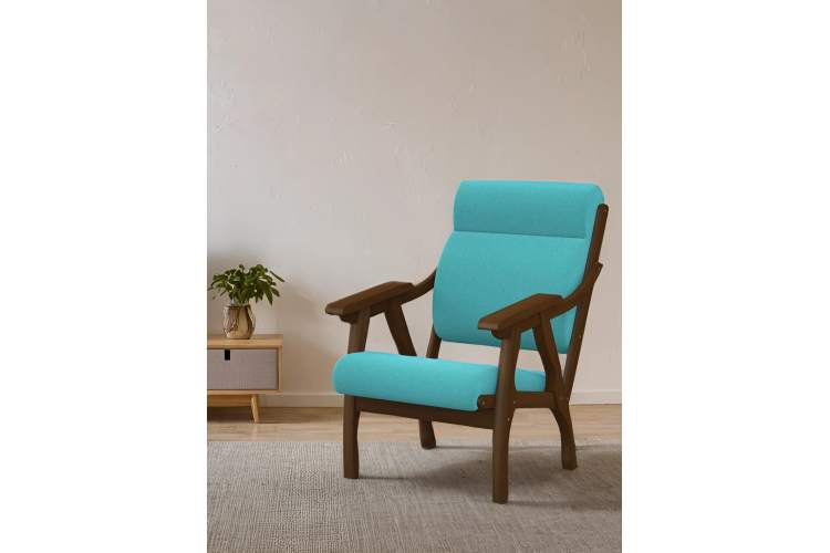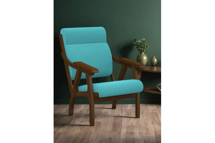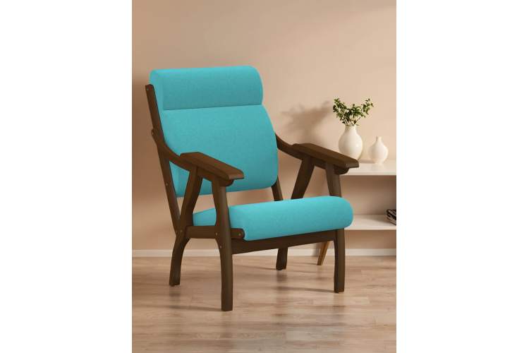Кресло Вега 10 ткань бирюза, каркас орех