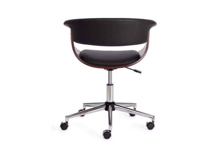 Изысканный дизайн кресла VIMTA из коллекции OFFICE удачно объединяет в себе черты элегантности и презентабельности. Благодаря своему уникальному внешнему виду модель отлично впишется в интерьер рабочего кабинета в доме или офисе. Прочный каркас, переходящий в подлокотники, изготовлен из шпонированной фанеры с красивым природным рисунком. Шпонированная фанера является безвредным и экологически чистым материалом. Комфортное сиденье с мягким наполнителем из пенополиуретана стандартной плотности легко подстраивается под контуры тела, не деформируется со временем. Высота кресла регулируется при помощи надежного и основательного механизма. Хромированная металлическая крестовина диаметром 640 мм устойчива, износостойка, имеет долгий срок службы. Для легкого перемещения модель оснащена высококачественными полиамидными роликами, которые подходят для использования на низковорсовых ковровых покрытиях и на специальных защитных поверхностях. Сочетание деревянного каркаса цвета орех, хромированной крестовины и обивки из черной искусственной кожи выглядит стильно и элегантно. Оригинальное кресло VIMTA станет основным акцентом в помещении, восхитит владельца своей привлекательностью, изысканностью и долговечностью. Максимальная нагрузка 120кг. Кресло поставляется в разобранном виде. Инструкция по сборке прилагается.