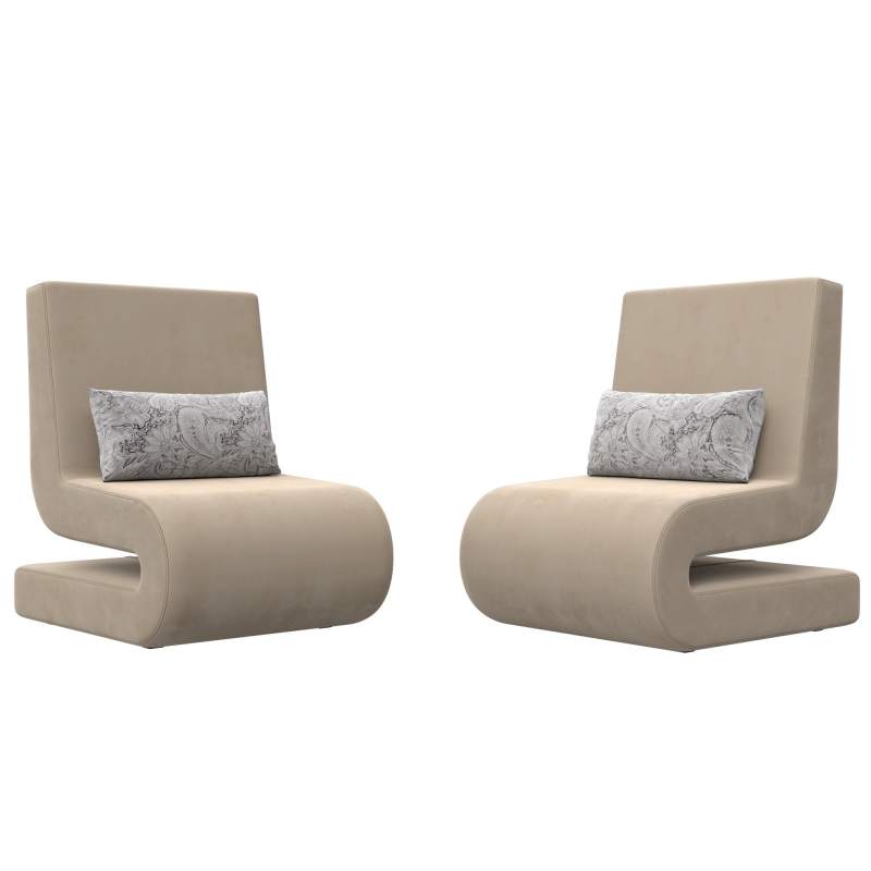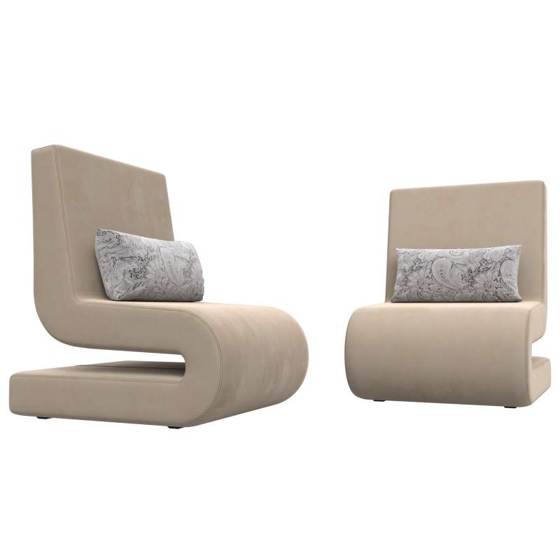 Кресло Волна (2 шт.) Велюр Seven 729 бежевый;Seven 17 серый