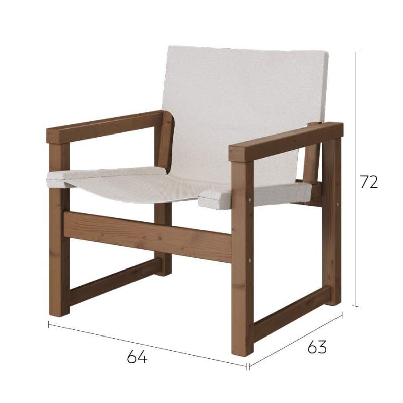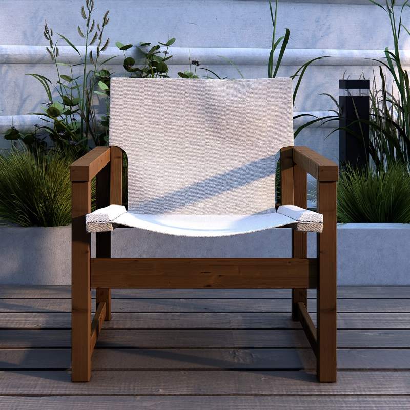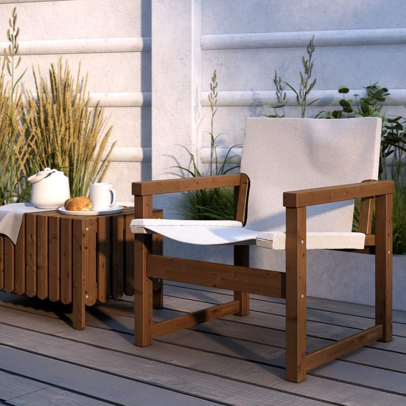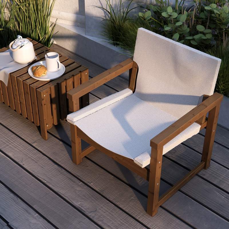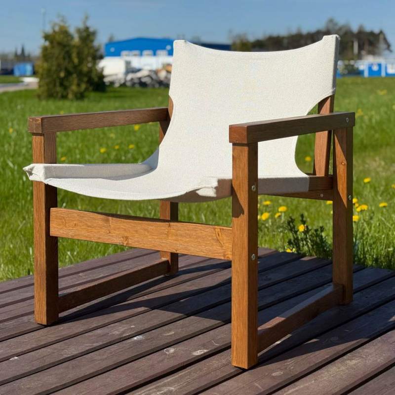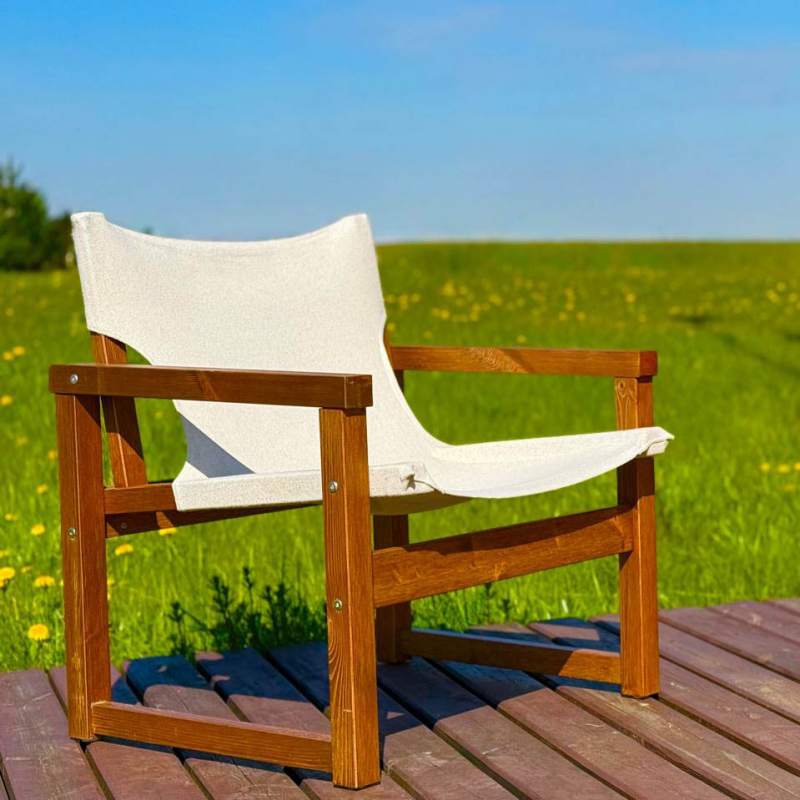 Натуральная древесина придаёт креслу тёплый, живой характер, а устойчивое покрытие обеспечивает защиту от влаги и солнечных лучей, позволяя использовать его под открытым небом.