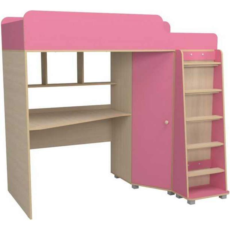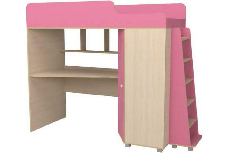 Кровать чердак с рабочей зоной Р440 Капризун 5 розовый