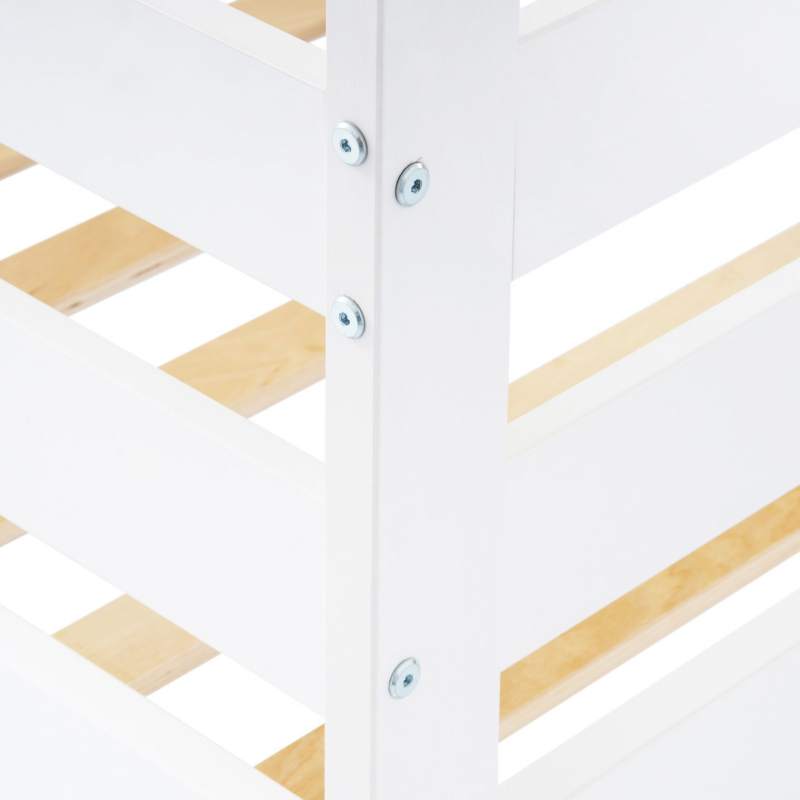 Кровать изготовлена из массива сосны. Покрытие выполнено с использованием красителей на водной основе и лака на основе акриловых смол с УФ-отверждением.