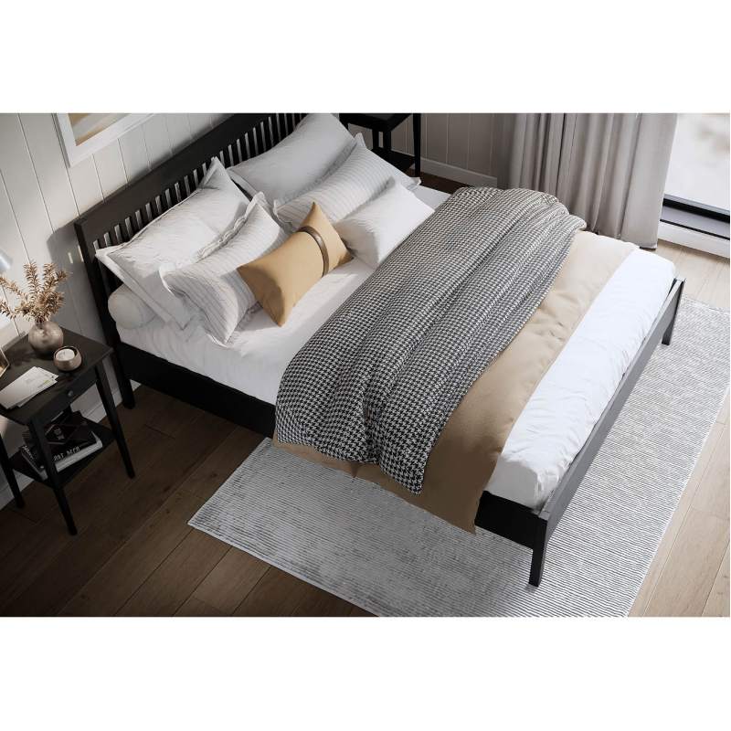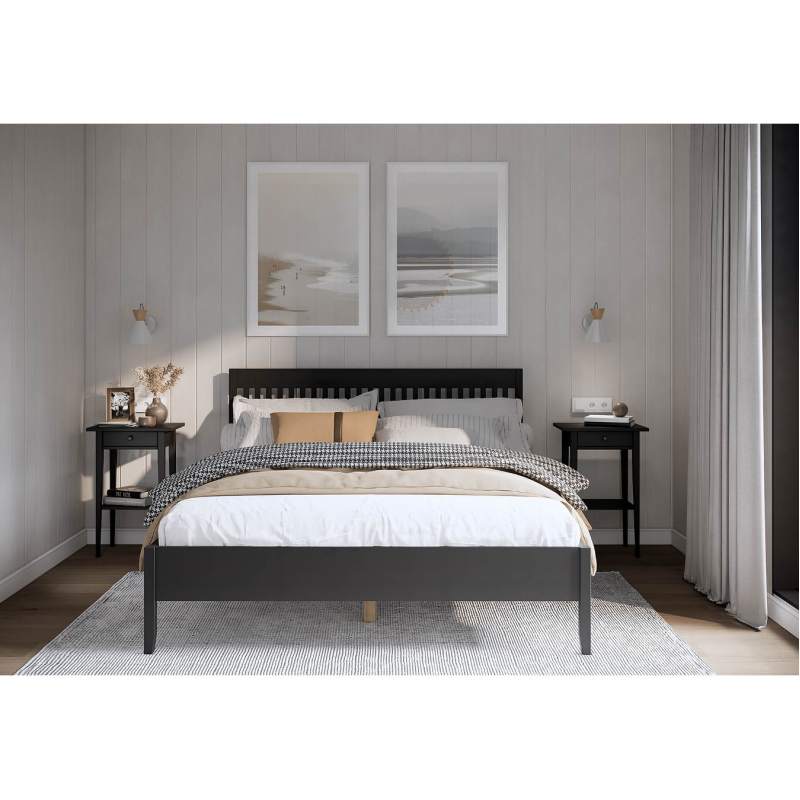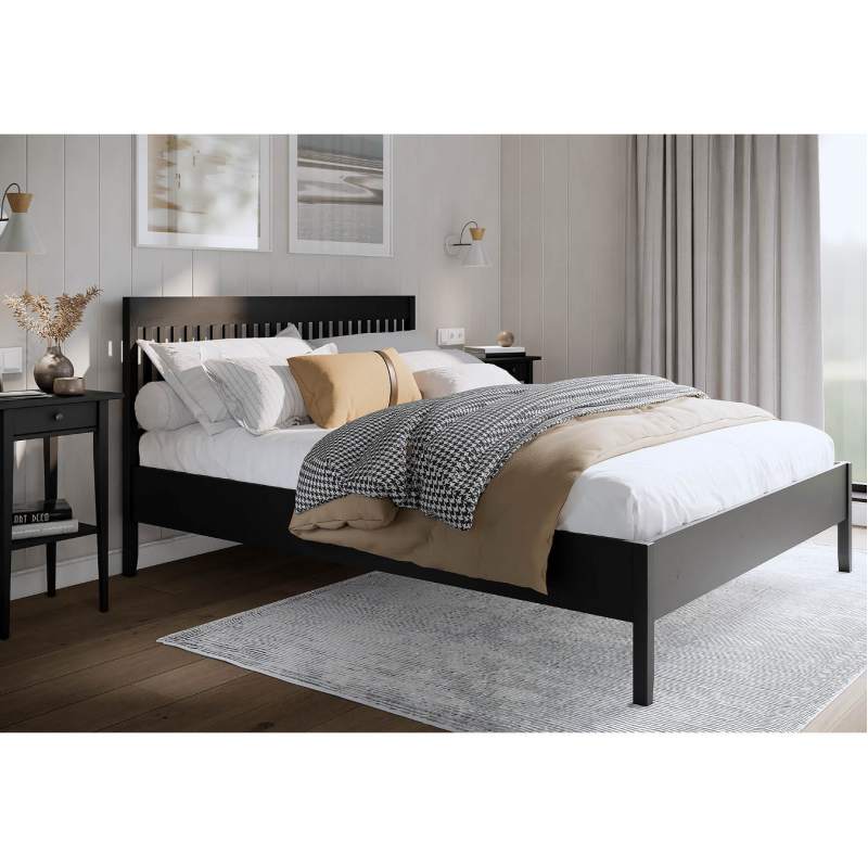 Покрытие выполнено с использованием красителей на водной основе и лака на основе акриловых смол с УФ-отверждением, которые сохраняют привлекательный внешний вид деревянной кровати.