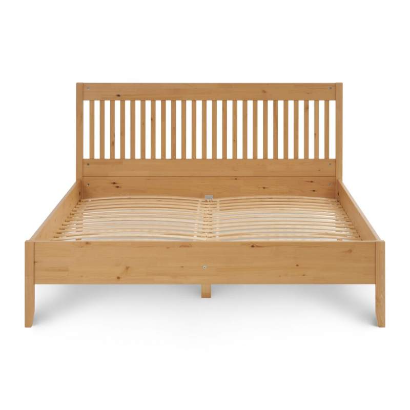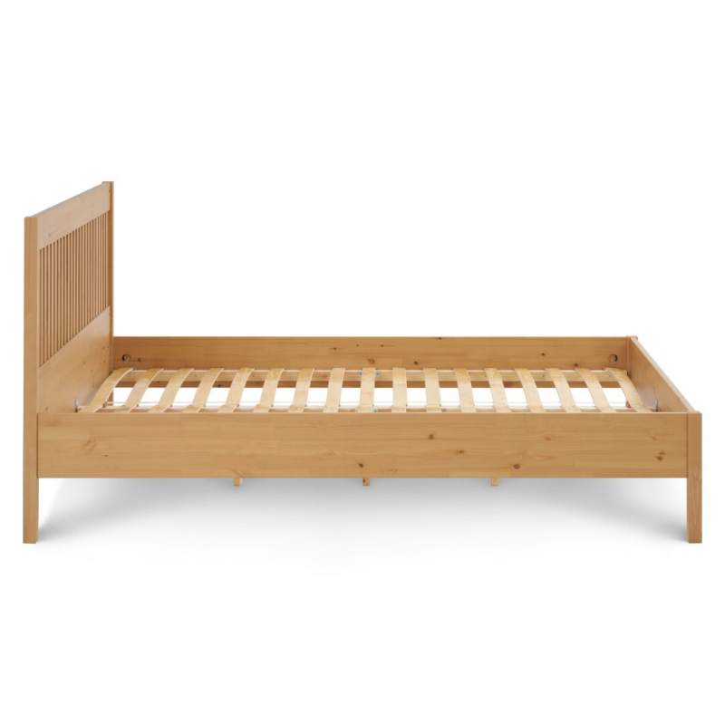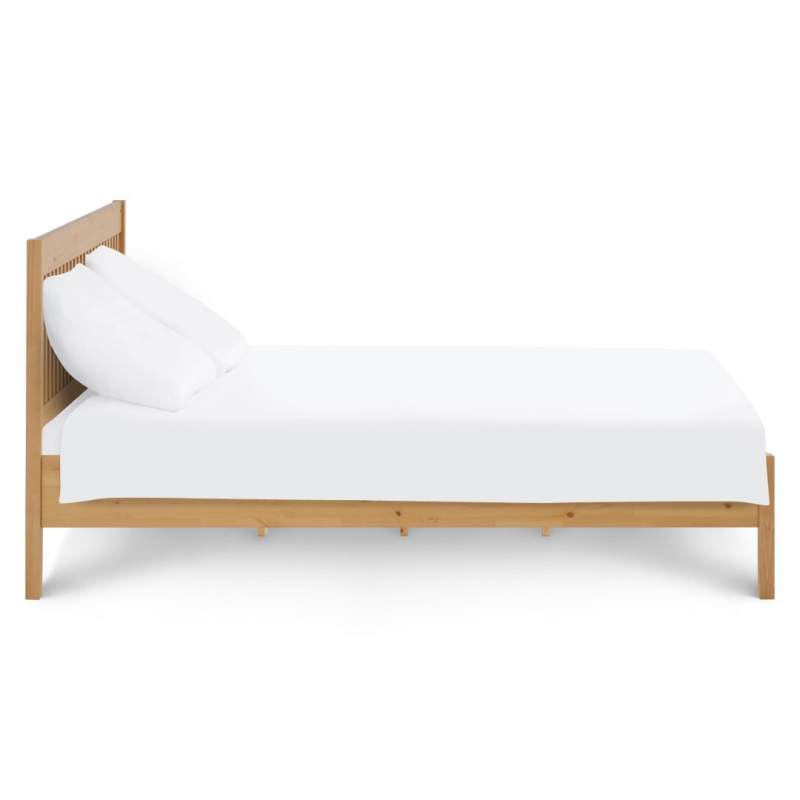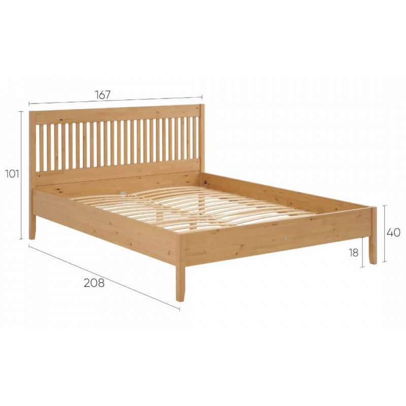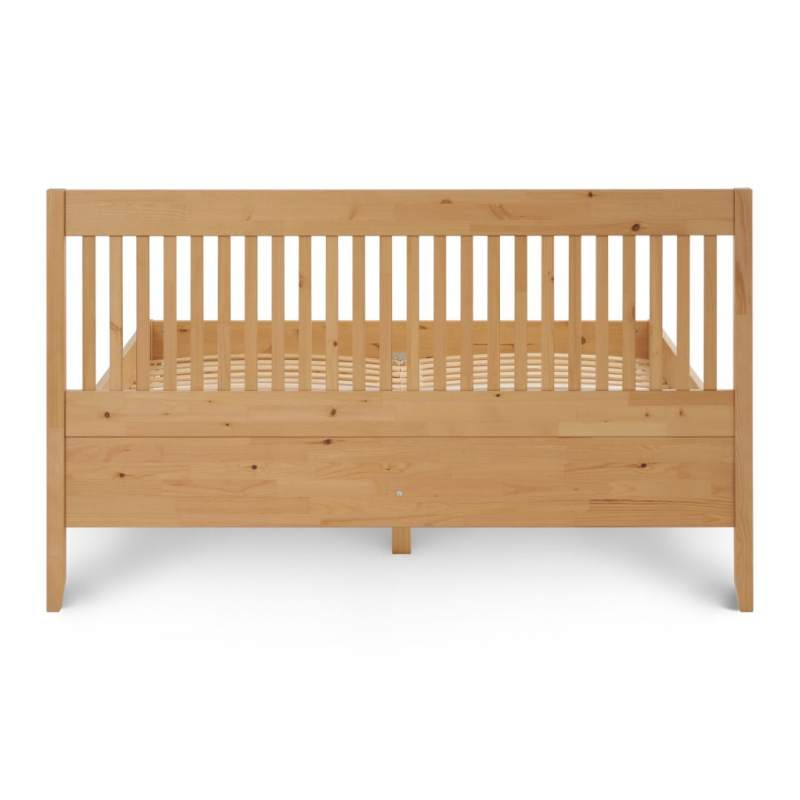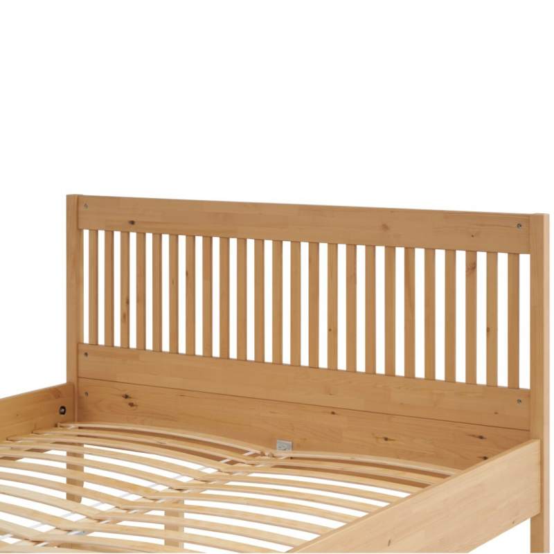 Кровать выполнена из массива сосны, который ценится за свою прочность, долговечность и экологичность