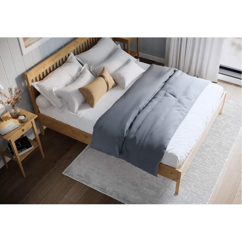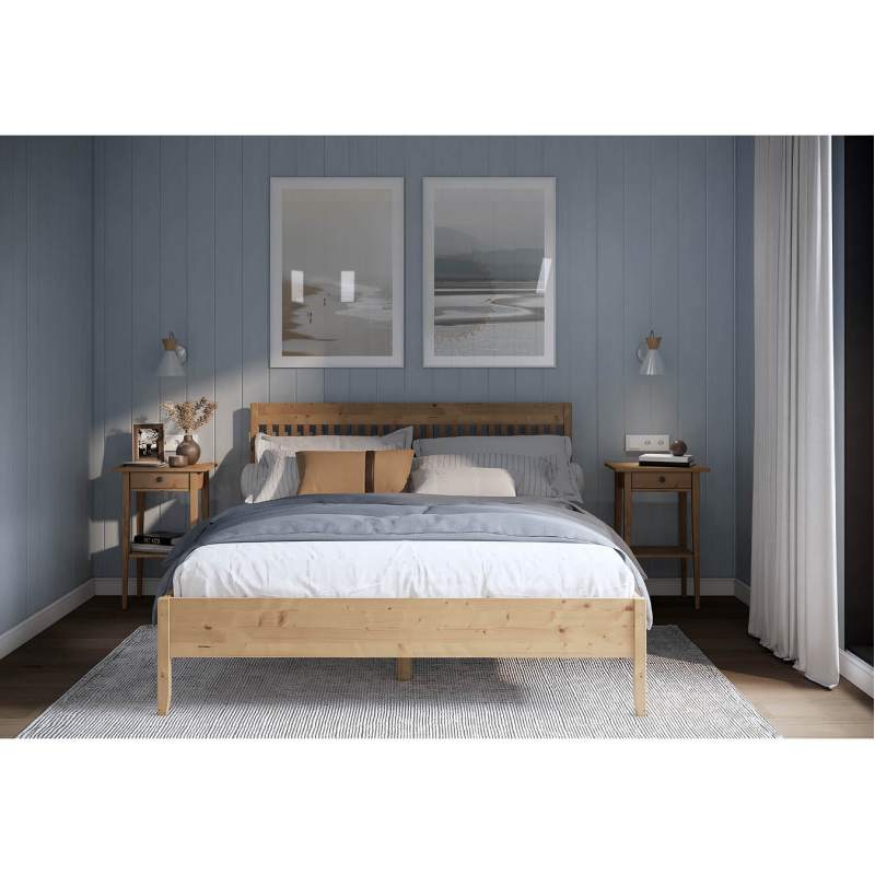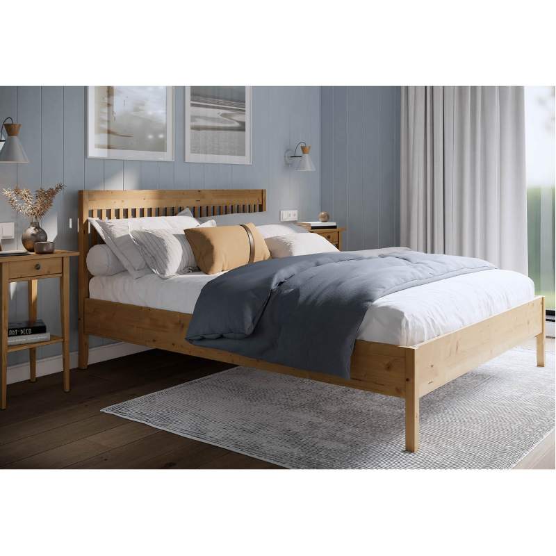 Покрытие выполнено с использованием красителей на водной основе и лака на основе акриловых смол с УФ-отверждением, которые сохраняют привлекательный внешний вид деревянной кровати.