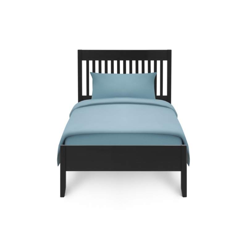 Покрытие выполнено с использованием красителей на водной основе и лака на основе акриловых смол с УФ-отверждением, которые сохраняют привлекательный внешний вид деревянной кровати.