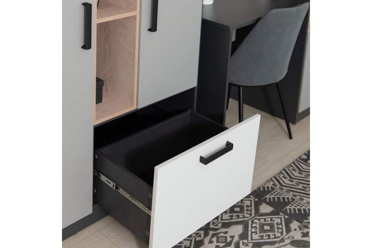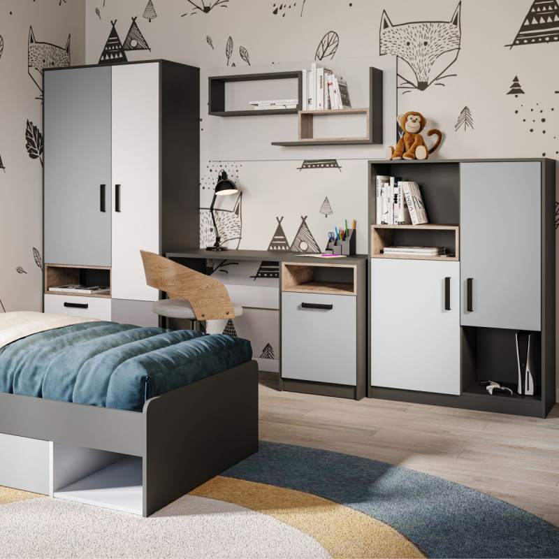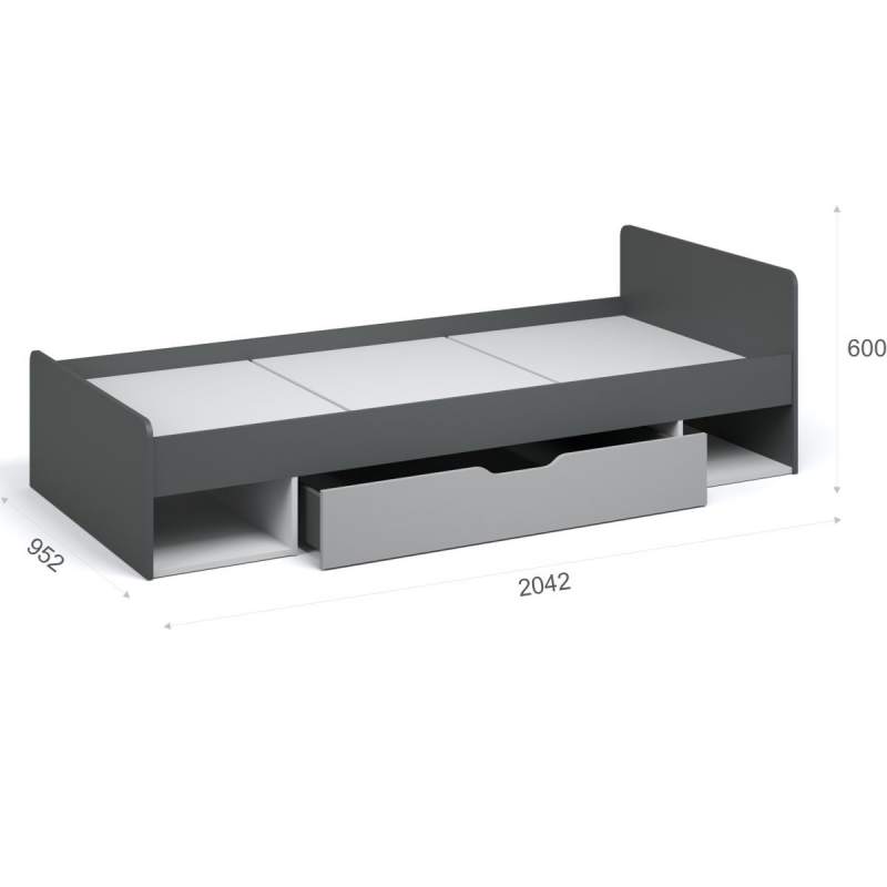 Кровать «Квадро» 90 с основанием под матрас, Антрацит/Белый/Шиншилла