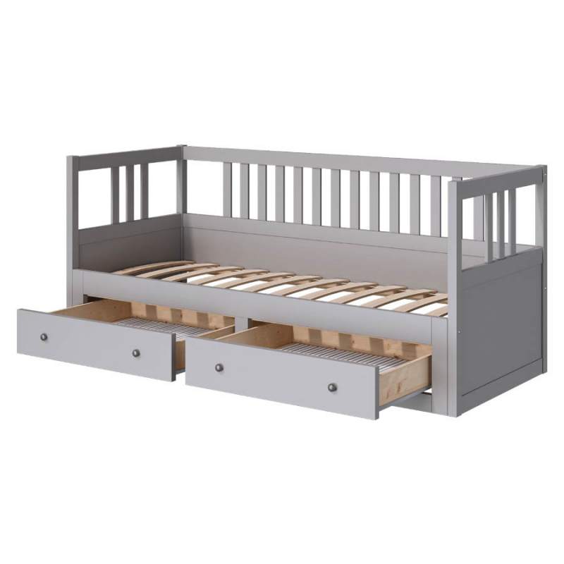 Имеет два ящика для хранения постельного белья, подушек или запасных одеял.