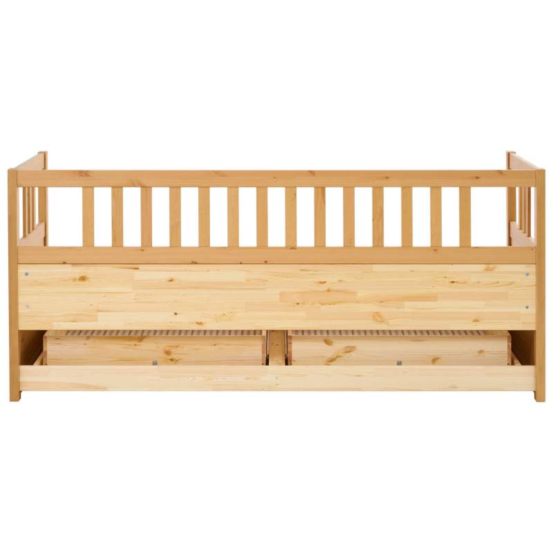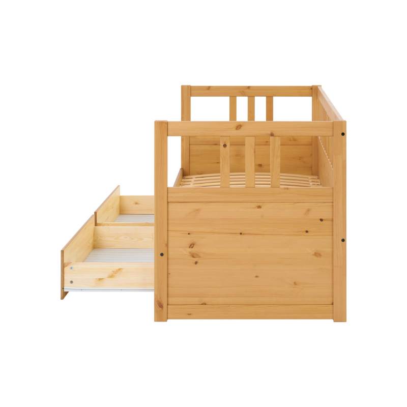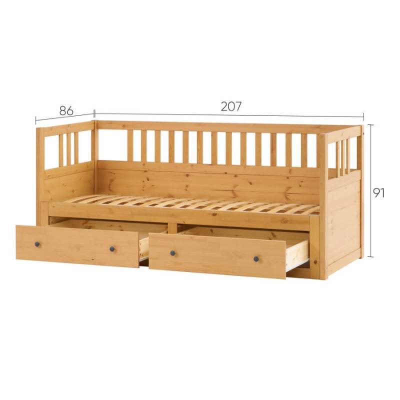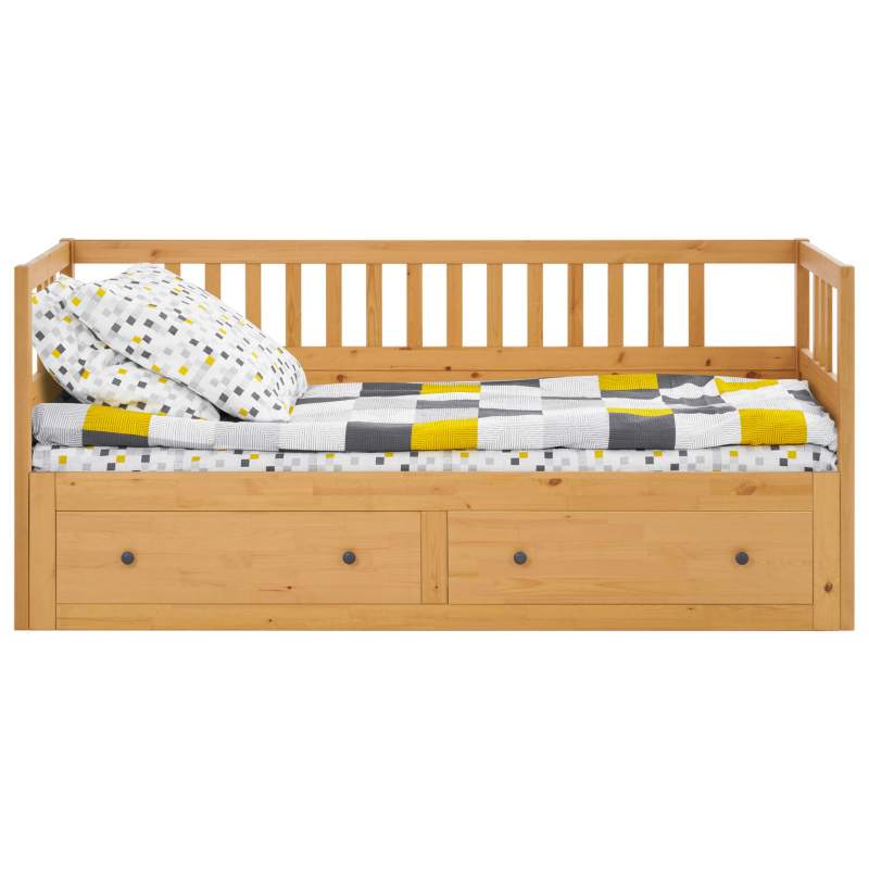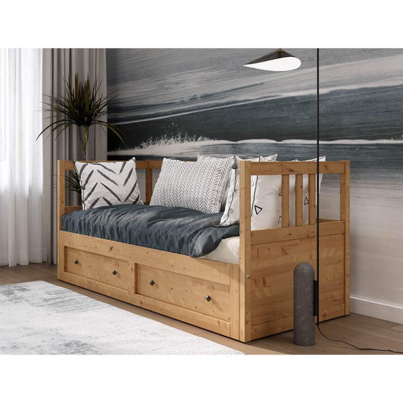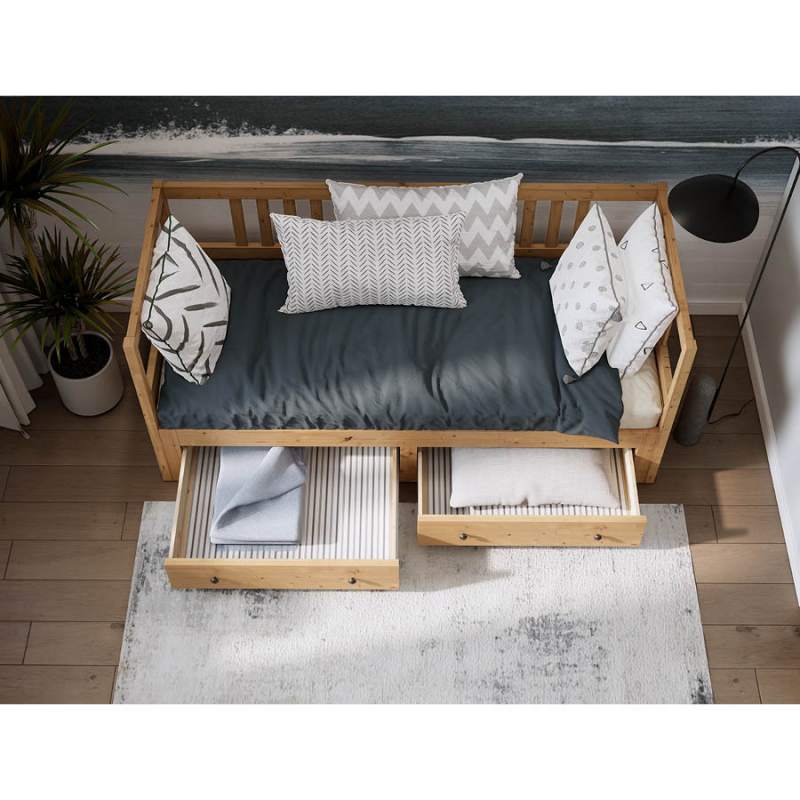 Имеет два ящика для хранения постельного белья, подушек или запасных одеял.