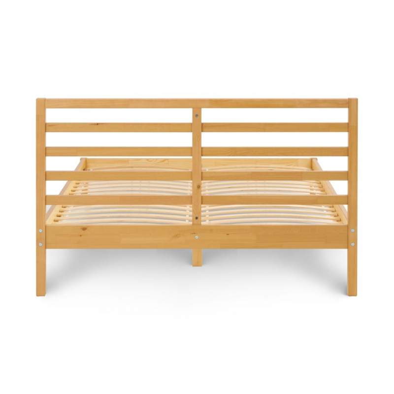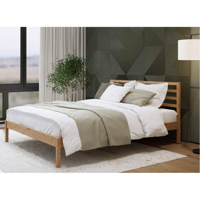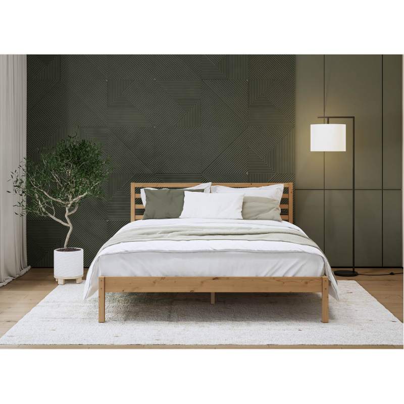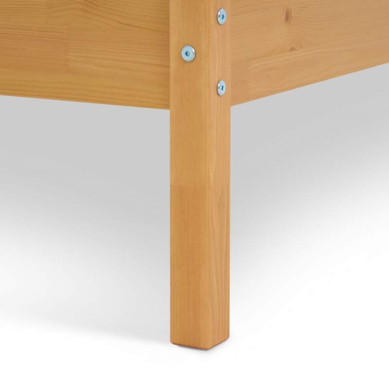 Кровать выполнена из массива сосны, который ценится за свою прочность, долговечность и экологичность
