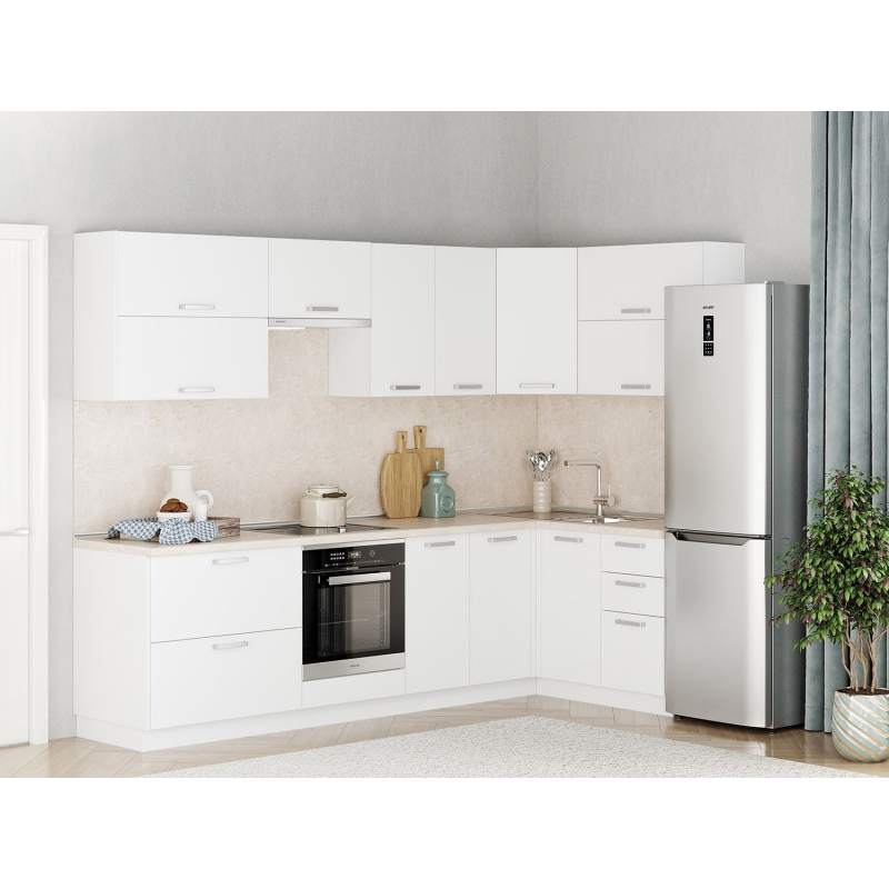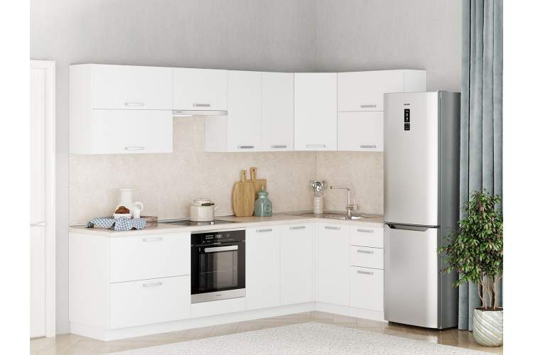 Кухня Борги комплект 8 Белый / Белый - современный, функциональный угловой кухонный гарнитур.