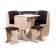 В комплект набора входят скамья большая, скамья маленькая, угловой элемент, стол трансформер и два табурета. Скамьи и угловой сегмент имеют мягкие спинки и сиденья, которые обтягиваются качественной экокожей. Варианты цветового решения экокожи позволят подобрать набор, подходящий под Ваш интерьер. Также в скамьях имеются ящики для хранения мелких предметов.