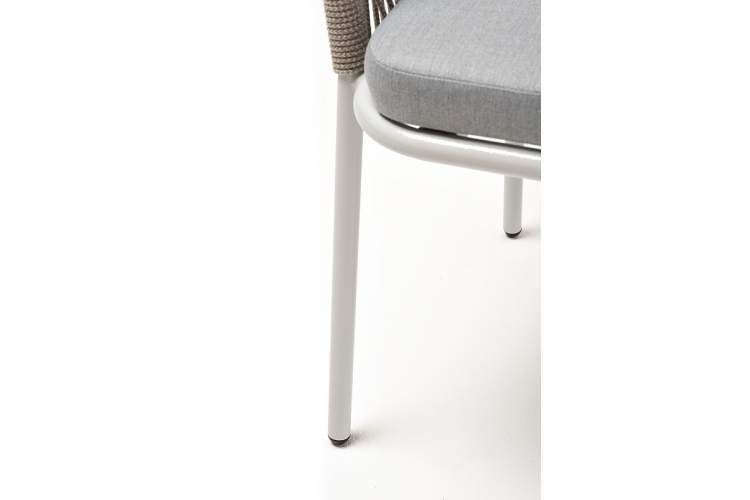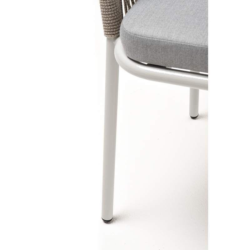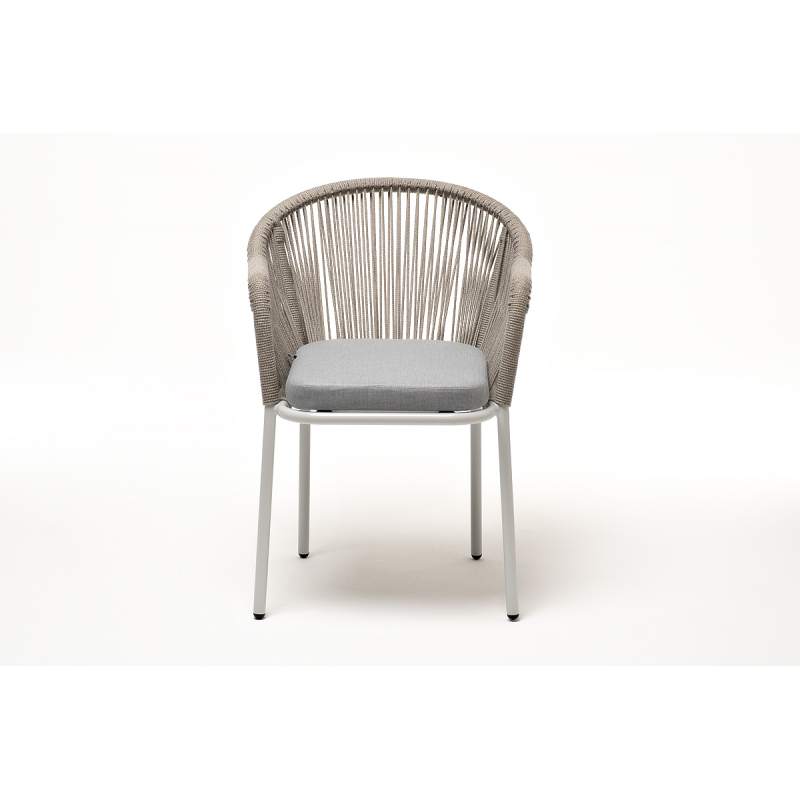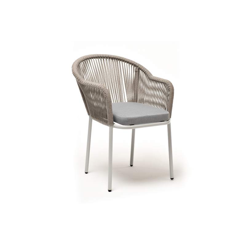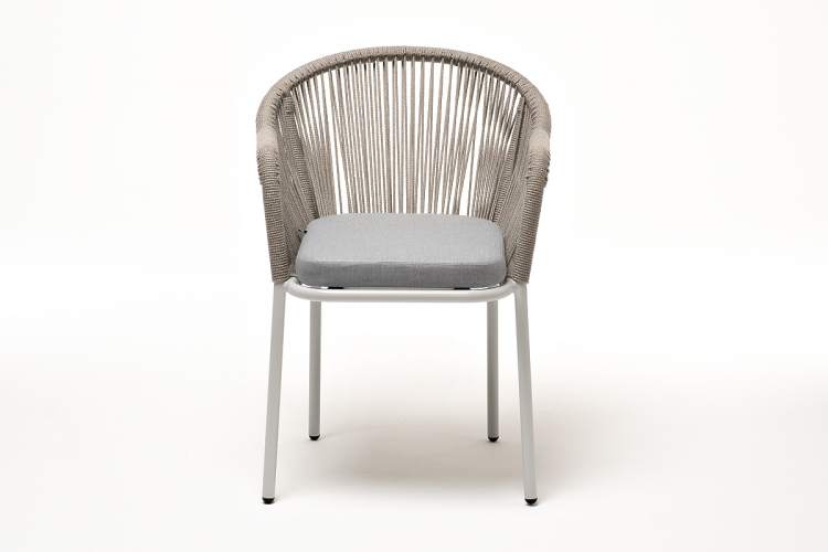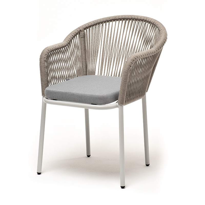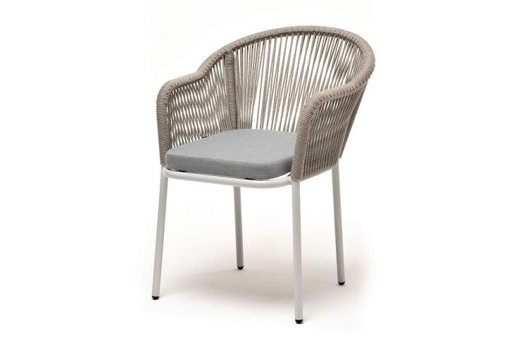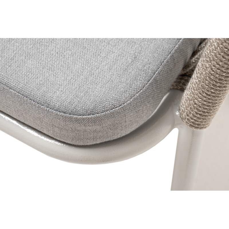 "Лион" стул плетеный из роупа, каркас алюминий светло-серый (RAL7035) муар, роуп серый меланж круглый, ткань светло-серая