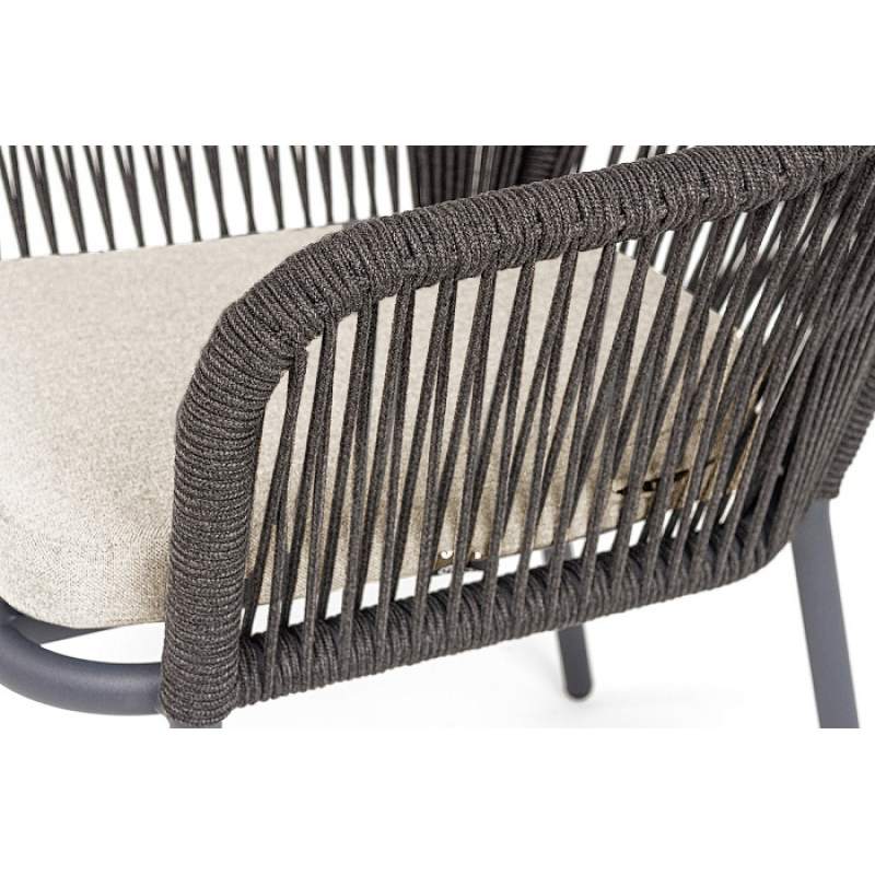 "Лион" стул плетеный из роупа, каркас алюминий темно-серый (RAL7024) муар, роуп темно-серый круглый, ткань бежевая 052