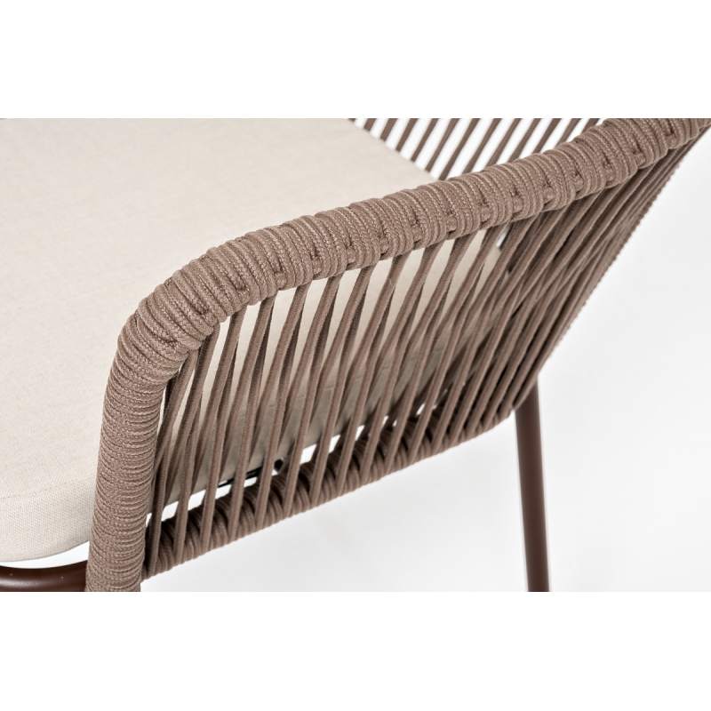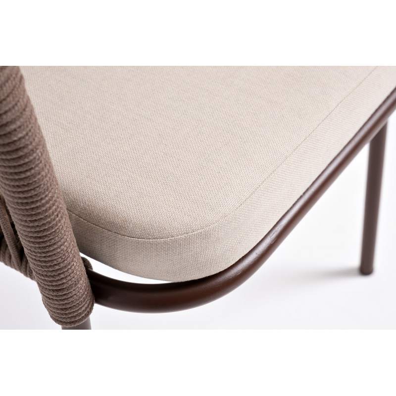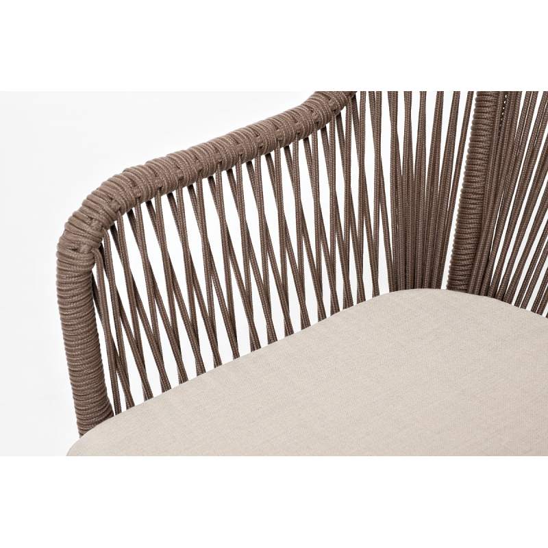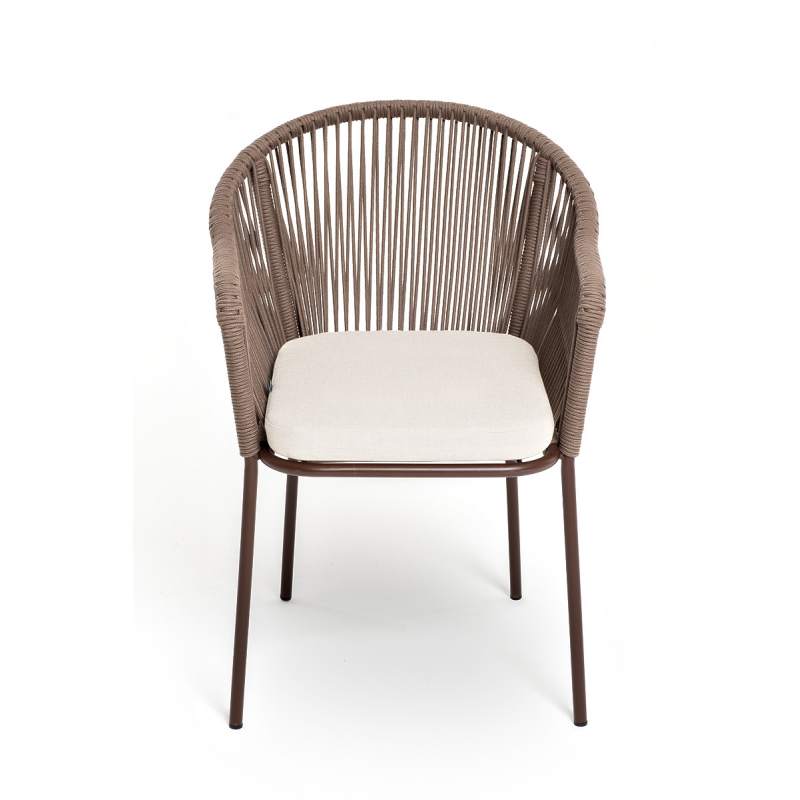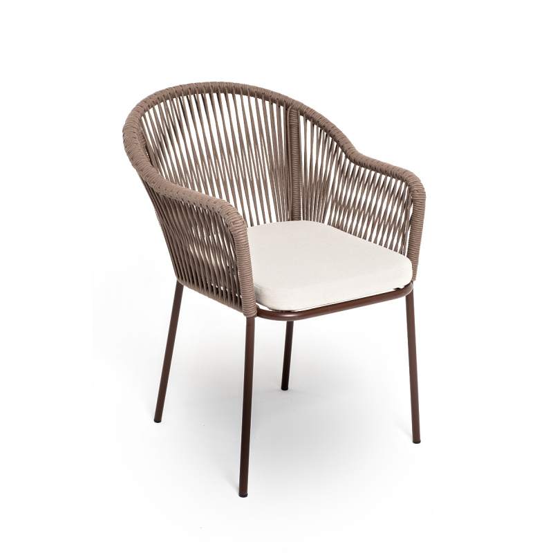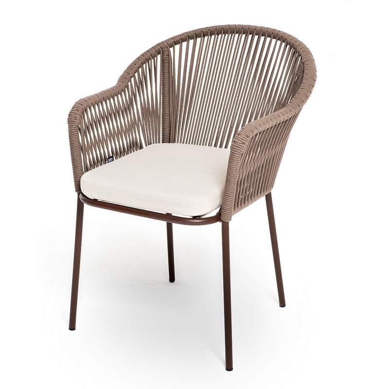 "Лион" стул плетеный из роупа, каркас из стали коричневый (RAL8016) муар, роуп коричневый круглый, ткань бежевая 15052
