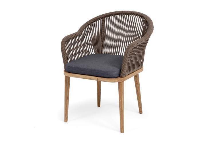 "Лион" стул плетеный из роупа, основание дуб, роуп коричневый круглый, ткань темно-серая 027