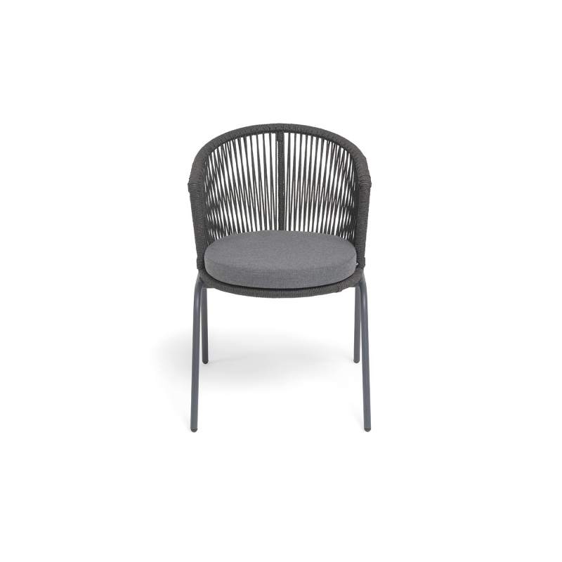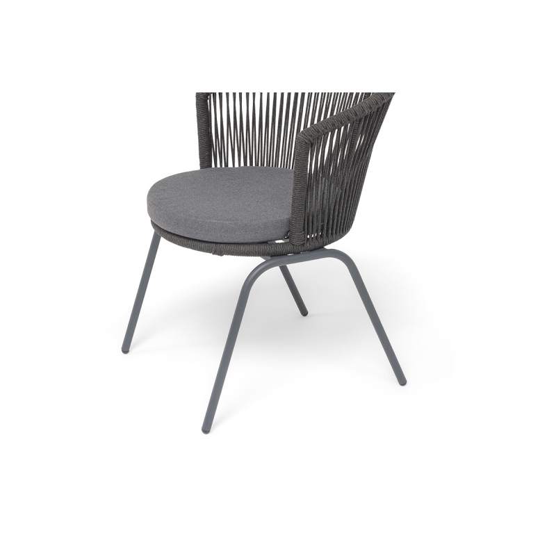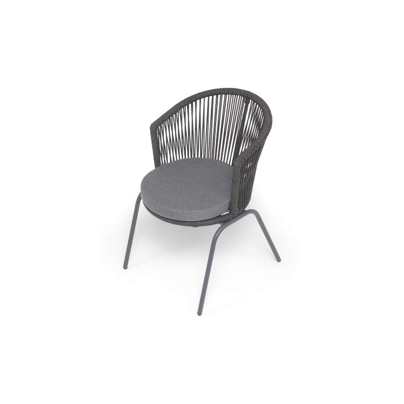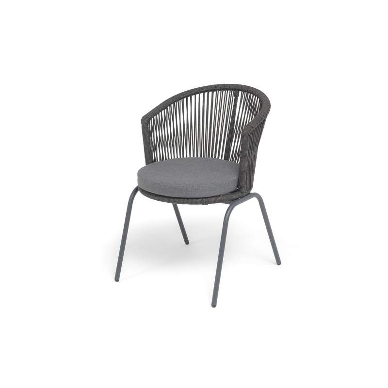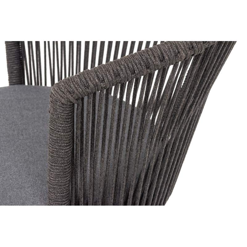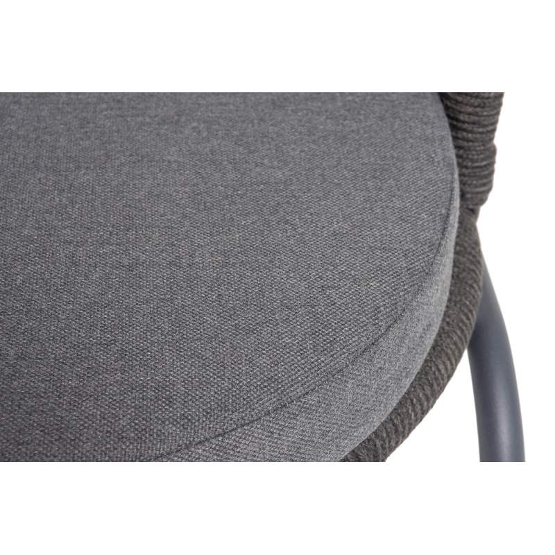 "Люксембург" стул плетеный из роупа, каркас из стали темно-серый (RAL7024) муар, роуп темно-серый круглый, ткань темно-серая 027