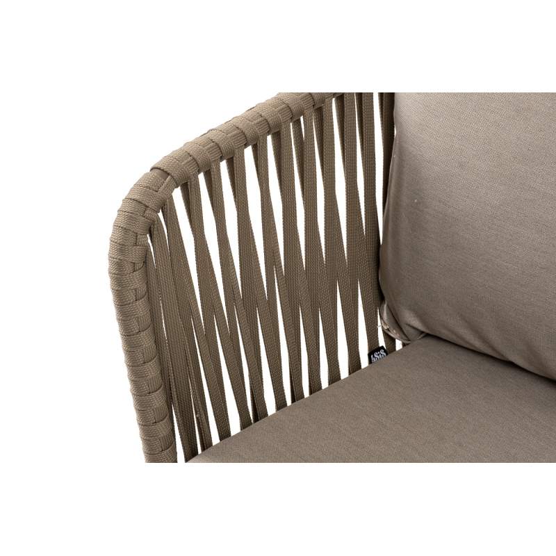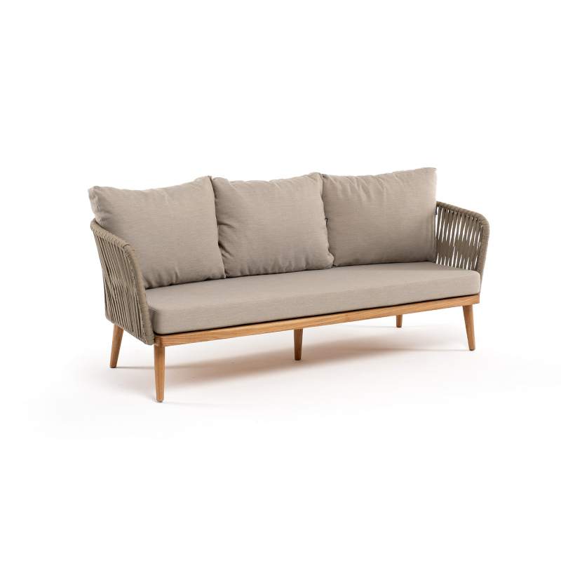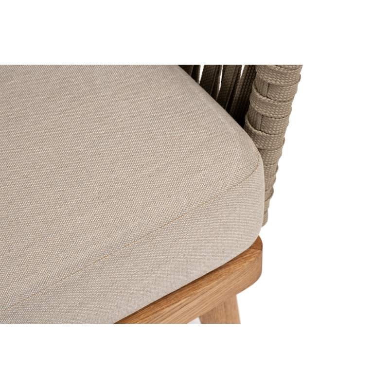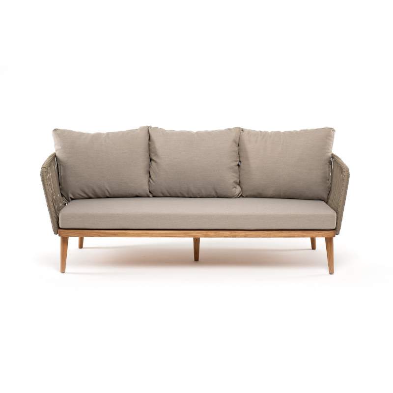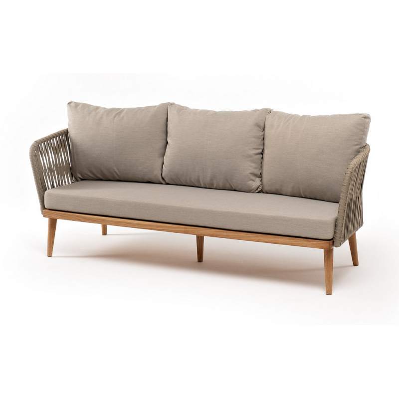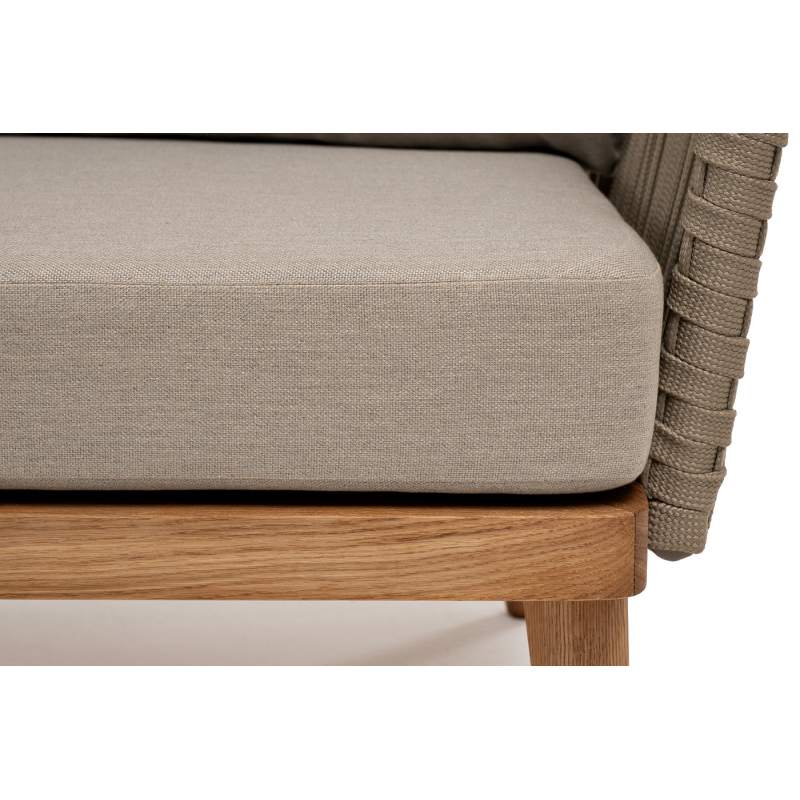 "Мальорка" диван 3-местный плетеный из роупа, основание дуб, роуп серо-коричневый 23мм, ткань бежевая 15052