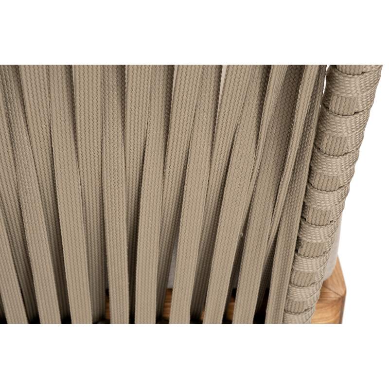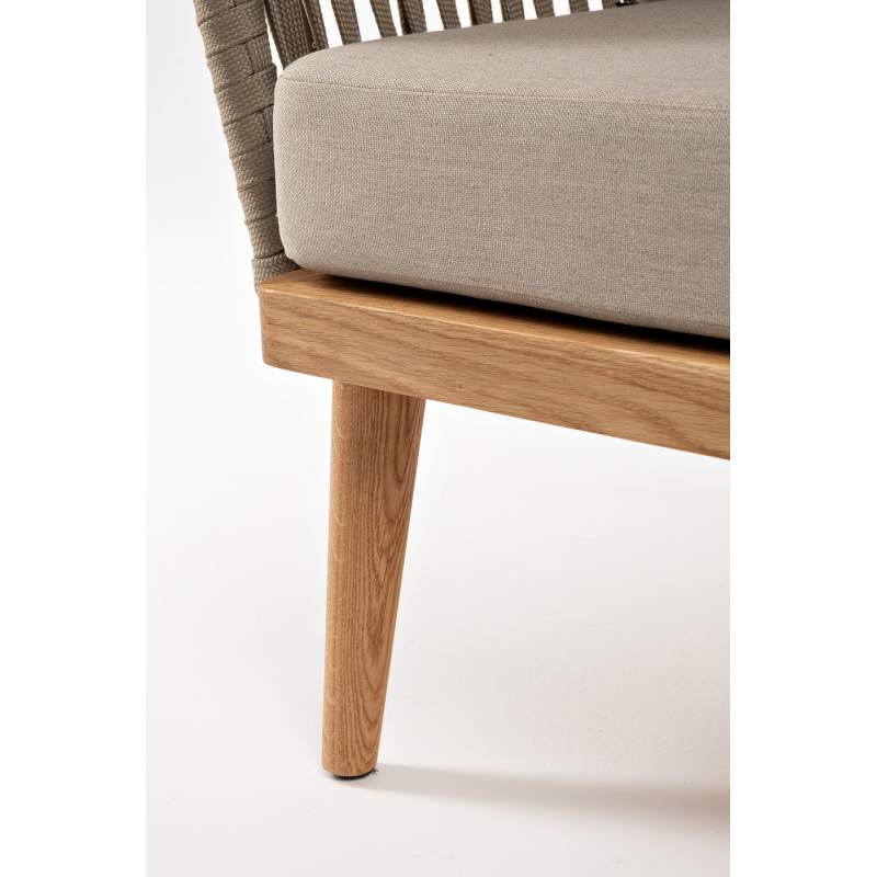 Боковины каркаса и спинка вручную оплетены роупом - эластичными синтетическими лентами, изготовленными из высокопрочных полиэфирных волокон. Цвет оплетки - серо-коричневый. Основание - дуб.