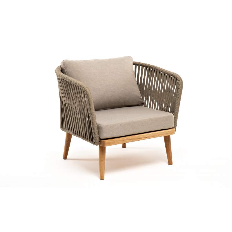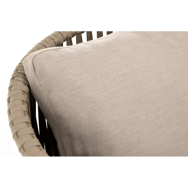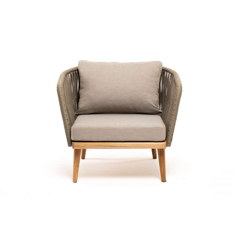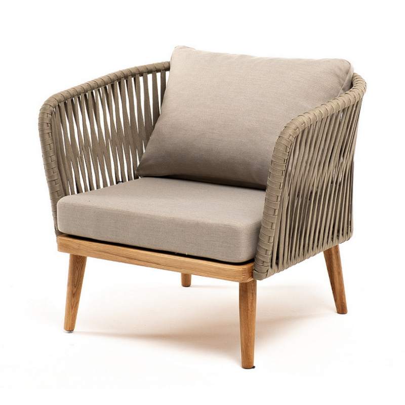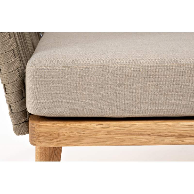 "Мальорка" кресло плетеное из роупа, основание дуб, роуп серо-коричневый 23мм, ткань бежевая 15052