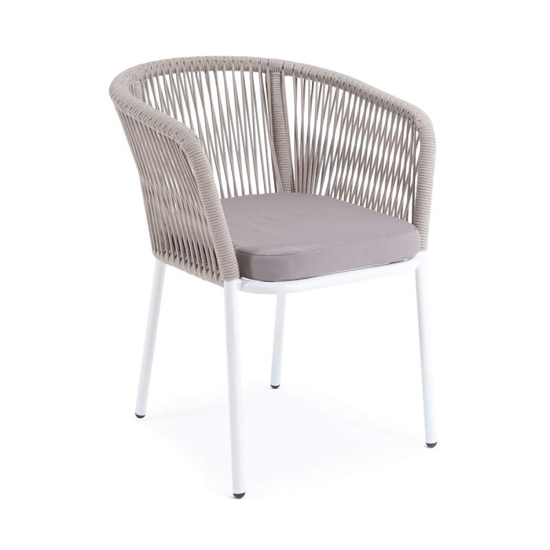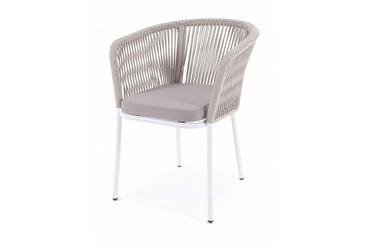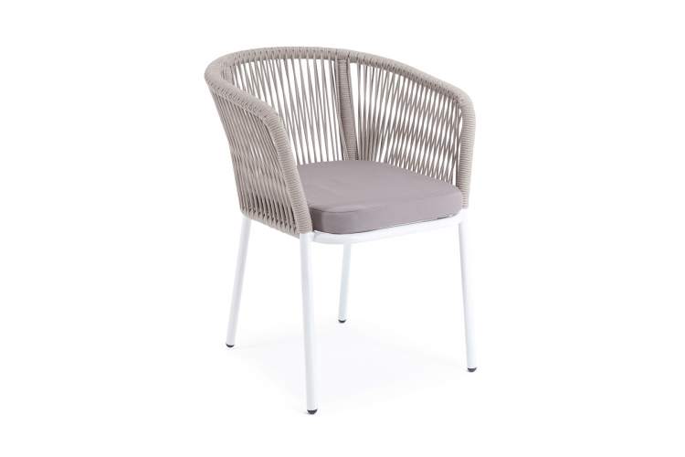 "Марсель" стул плетеный из роупа, каркас алюминий светло-серый (RAL7035) муар, роуп бежевый круглый, ткань бежевая 15052