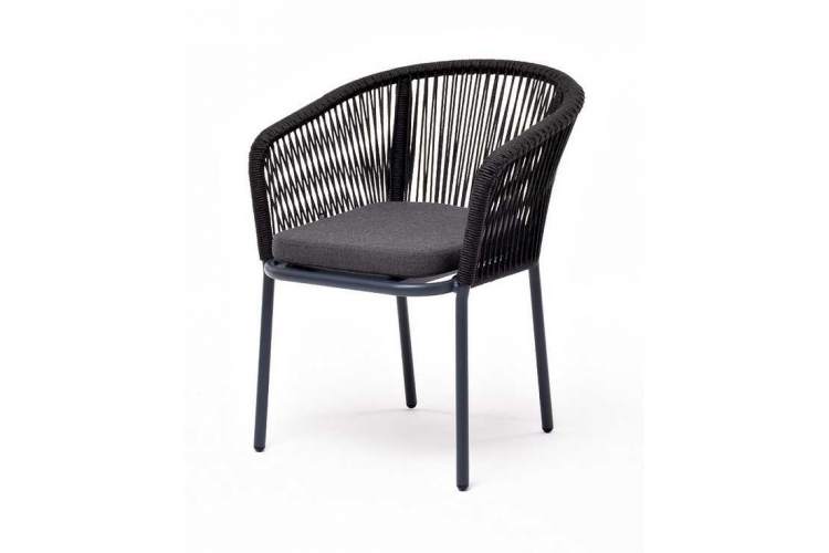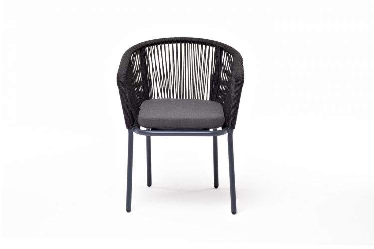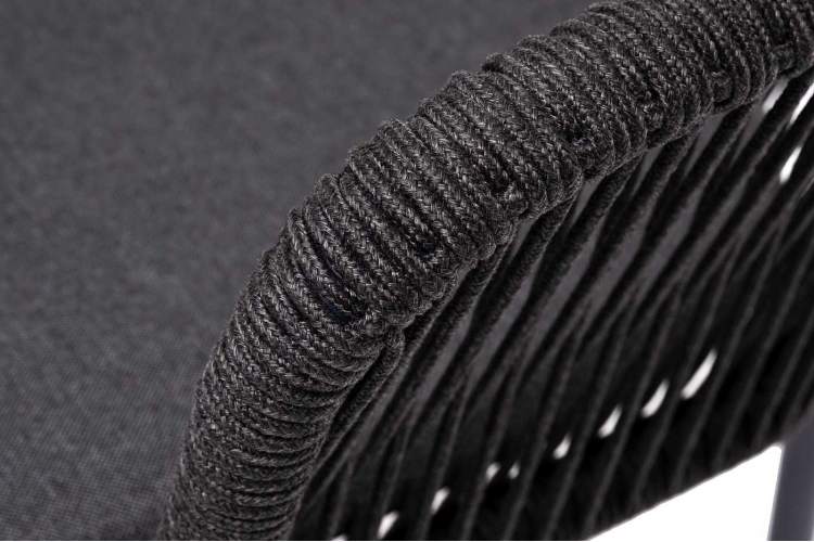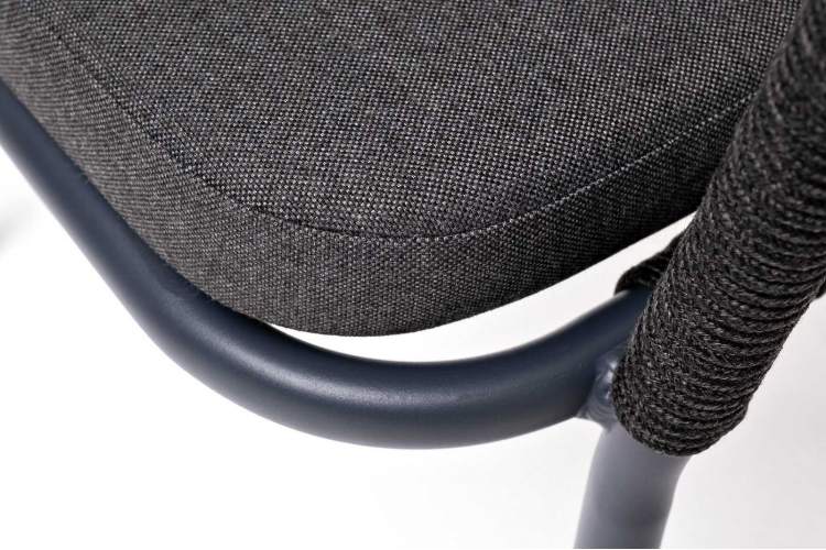 "Марсель" стул плетеный из роупа, каркас алюминий темно-серый (RAL7024) муар, роуп темно-серый круглый, ткань темно-серая 027