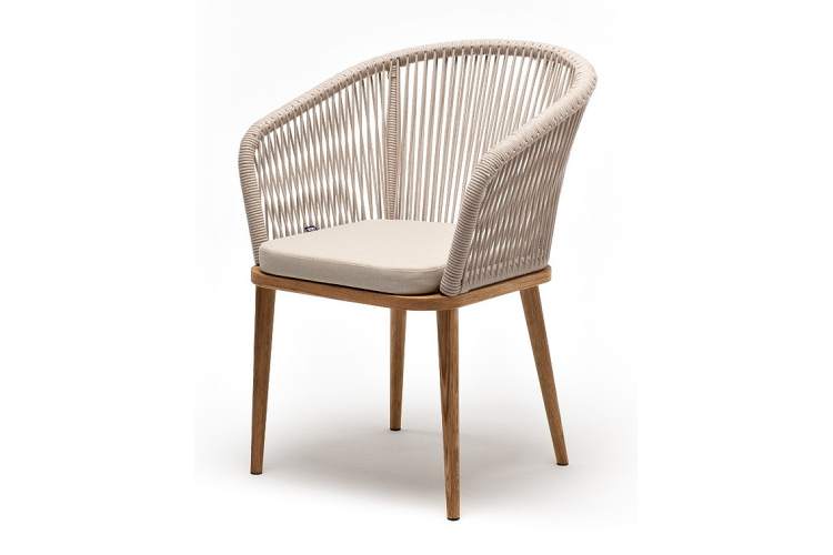 "Марсель" стул плетеный из роупа, основание дуб, роуп бежевый круглый, ткань бежевая 052