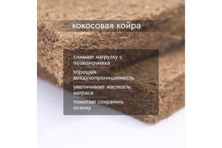 Беспружинный матрас изготовлен из монолитной плиты натурального кокосового волокна - прочного и дышащего материала, обладающего гипоаллергенными свойствами. Кокос помогает сохранить осанку и снять нагрузку с позвоночника. Данный материал устойчив к влаге и воздухопроницаем. За счет своей жесткости кокосовое волокно обеспечивает матрасу хороший ортопедический эффект. Материалы: кокос + спанбонд в обёртке Чехол: жаккард, стёганный на синтепоне Характеристики: Пружинный блок: Беспружинный матрас Размеры: 160*80*8 Высота матраса: 8 см Нагрузка на спальное место: 140 кг Жесткость: жесткий Цвет: белый Пол: унисекс Страна производства: Россия Гарантия: 12 месяцев