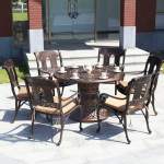 Обеденный комплект из литого алюминия вмещает за собой большое количество людей. Массивная ножка дел..
