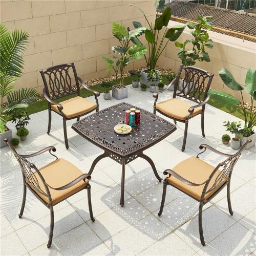 Комплект мебели из литого алюминия: стол «Палм» (100 см) и 4 кресла «Финляндия».Изящный круглый стол..