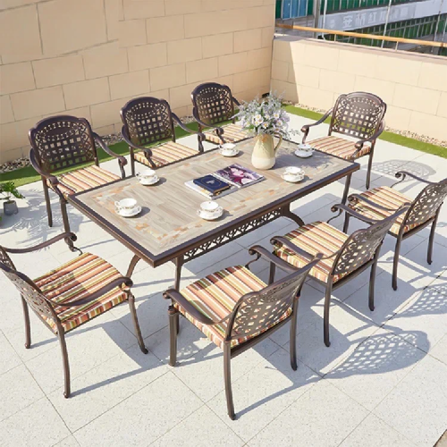 Стол из литого алюминия с керамикой Марбелья сравнивают с произведением искусства, поэтому его испол..