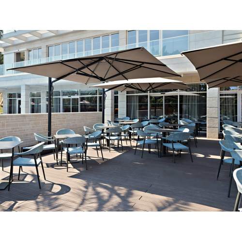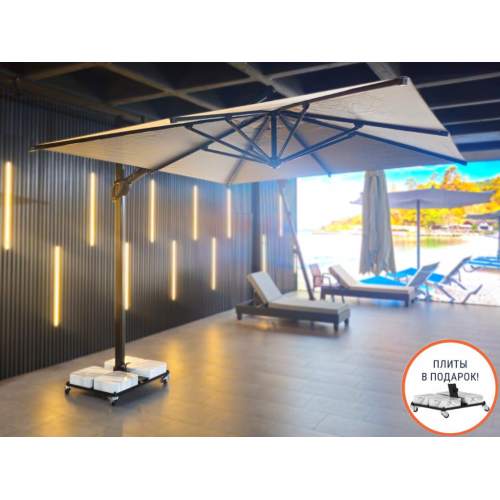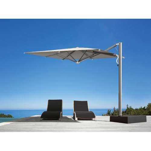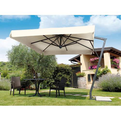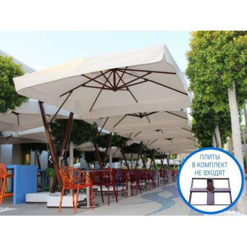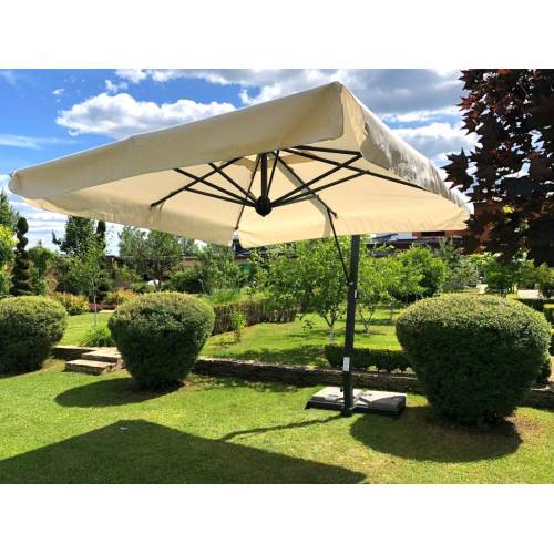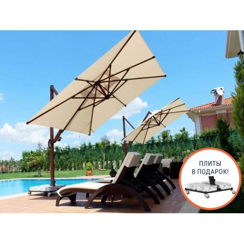 Квадратный уличный зонт SKY в бежевом цвете. Этот зонт имеет алюминиевую ногу и основание из плит, в..