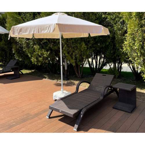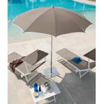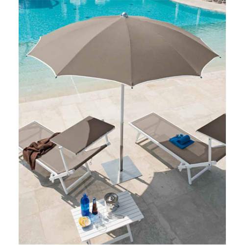 Круглый уличный зонт SKY в бежевом цвете. Этот зонт имеет алюминиевую ногу и основание из плит, выпо..