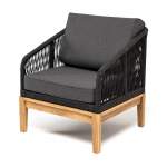 "Канны" кресло плетеное из роупа, основание дуб, роуп темно-серый круглый, ткань темно-серая 027