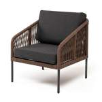 "Канны" кресло плетеное из роупа, каркас алюминий коричневый (RAL8016) муар, роуп коричневый круглый, ткань темно-серая 027