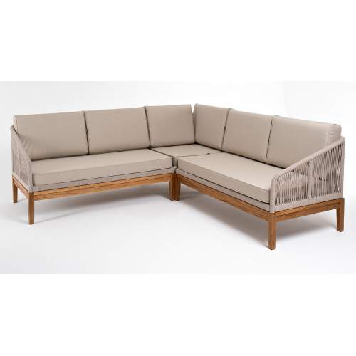 "Канны" диван модульный плетеный из роупа, основание дуб, роуп бежевый круглый, ткань бежевая 15052