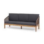 "Канны" диван 3-местный плетеный из роупа, основание дуб, роуп коричневый круглый, ткань темно-серая 027