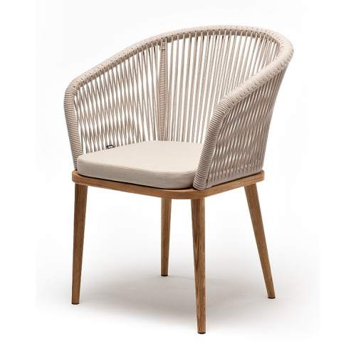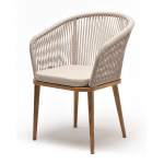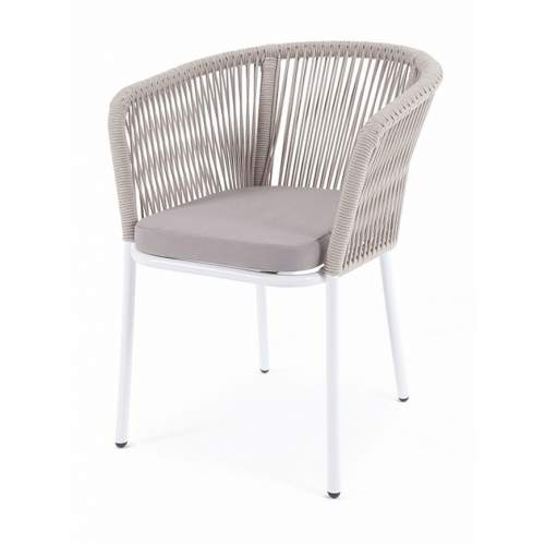 "Марсель" стул плетеный из роупа, каркас алюминий белый муар, роуп бежевый круглый, ткань бежевая 15052