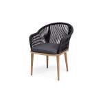 "Марсель" стул плетеный из роупа, каркас алюминий черный муар, роуп темно-серый круглый, ткань темно-серая 027