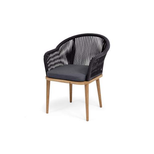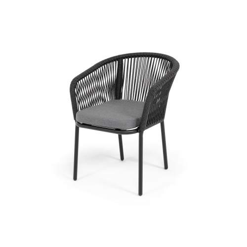 "Марсель" стул плетеный из роупа, каркас алюминий темно-серый (RAL7024) муар, роуп темно-серый круглый, ткань темно-серая 027