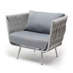 "Монако" кресло плетеное из роупа, каркас алюминий белый муар, роуп светло-серый 40 мм, ткань светло-серая
