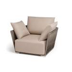 "Форли" кресло плетеное из роупа, каркас алюминий светло-серый (RAL7035) муар, роуп серо-коричневый 23мм, ткань Mossle бежевая